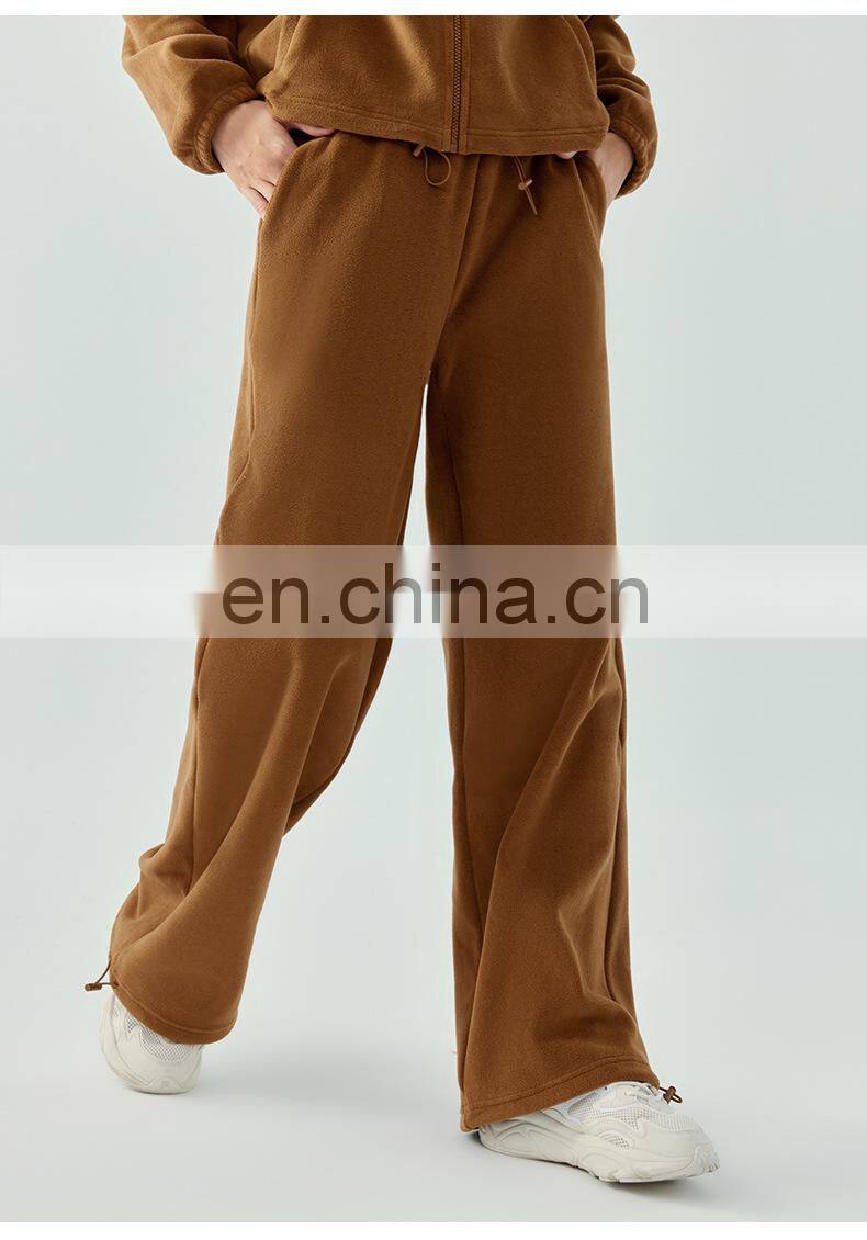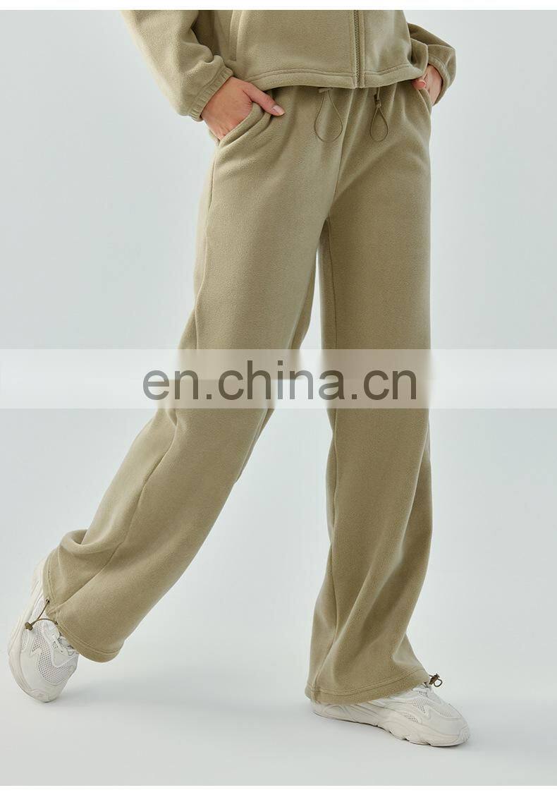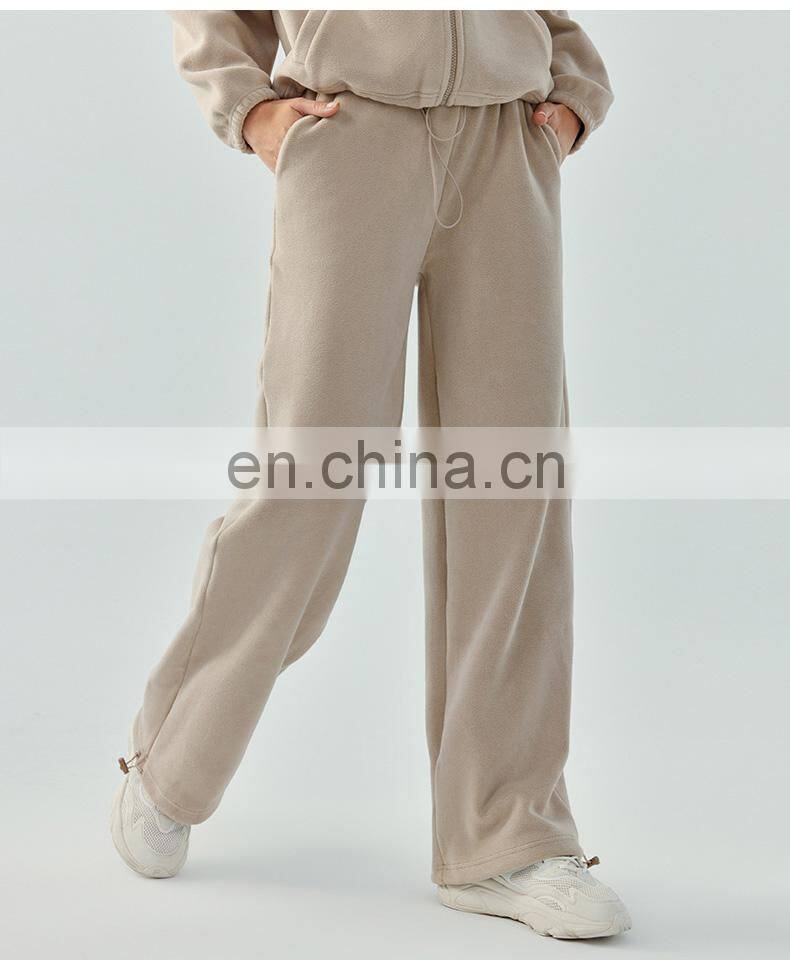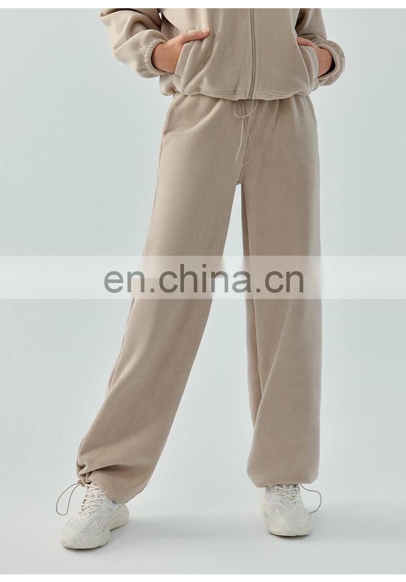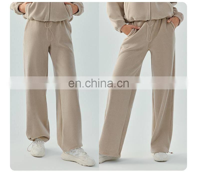 Custom Drawstring Sweatpants Windproof Warmth Running fitness Trousers Loose Straight Leg Jogger Pants Women Fleece Sweatpants