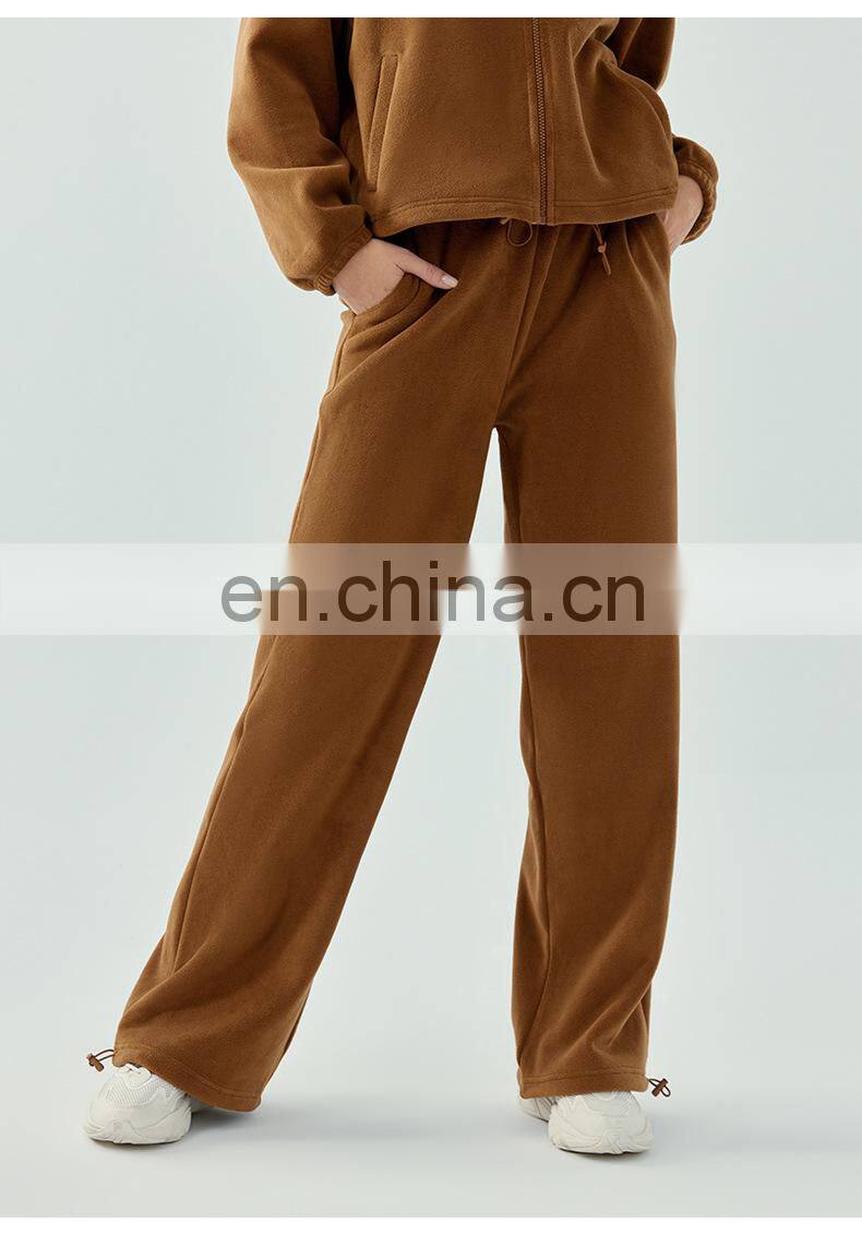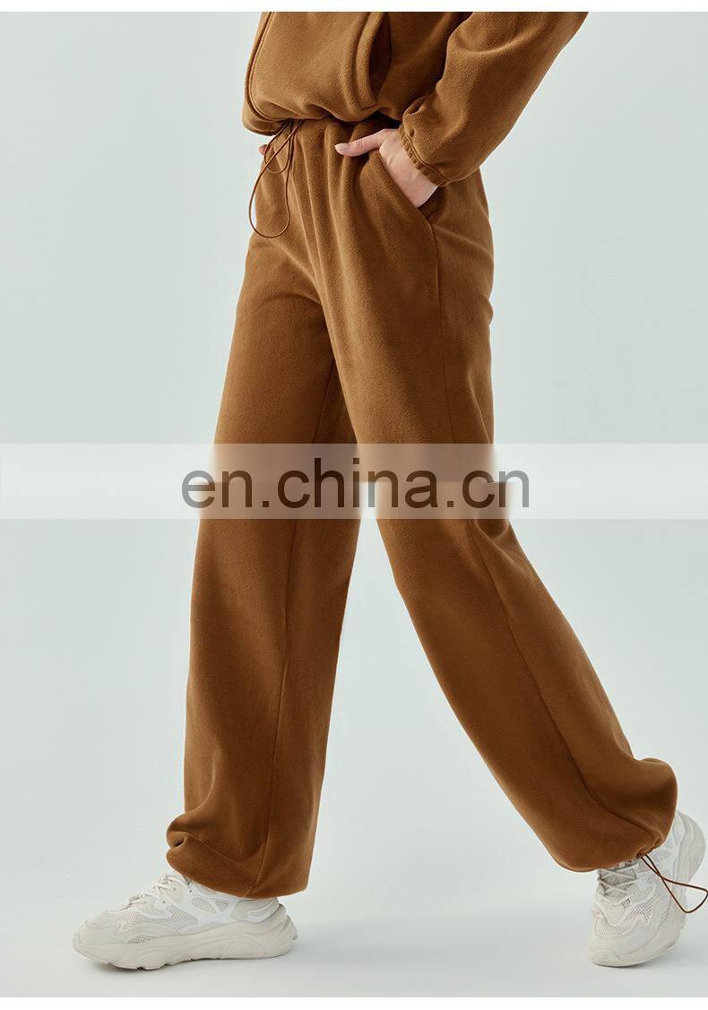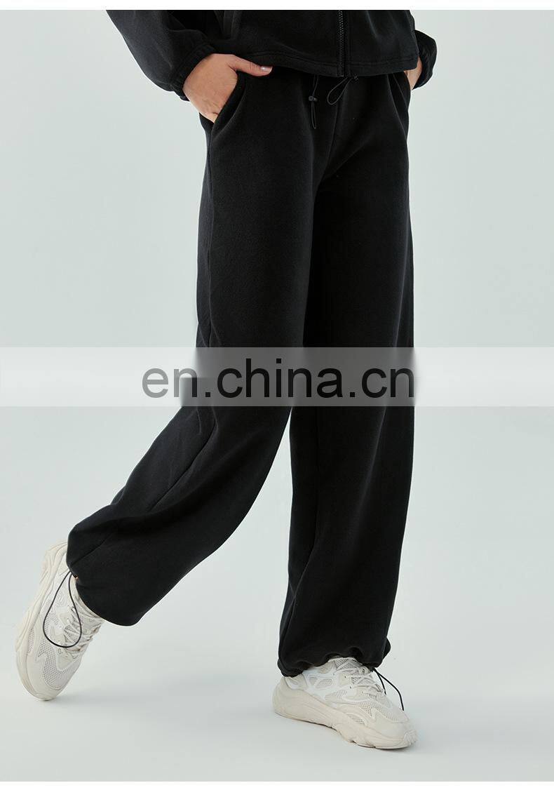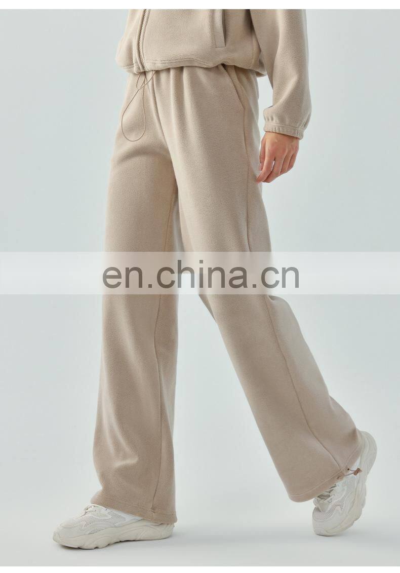 Custom Drawstring Sweatpants Windproof Warmth Running fitness Trousers Loose Straight Leg Jogger Pants Women Fleece Sweatpants