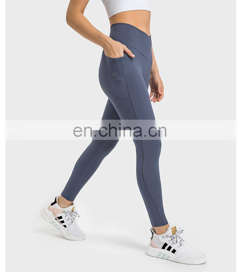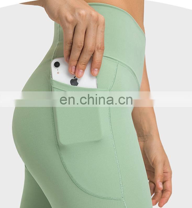 Anti-Rolling Double Side Pockets Sports Leggings Custom Gym Fitness Legging High Waist Butt Lifting Pants Women Yoga Leggings