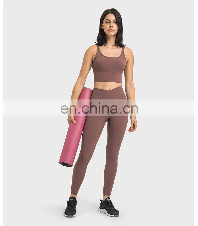 Wholesale Sexy Cross Back Thin Strap Long Line Sports Bra High Waist V Back Peach Hip Two Piece Women Yoga Gym Workout Suit Set
