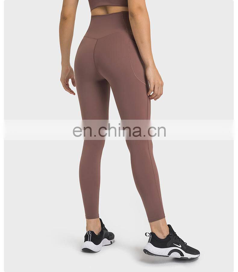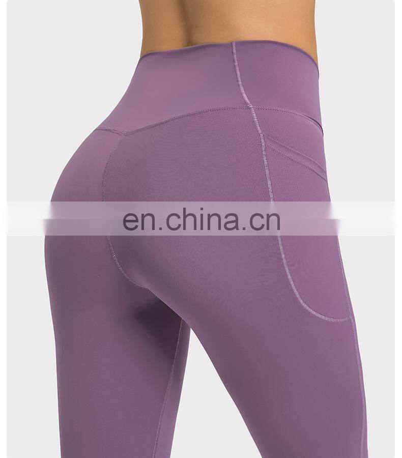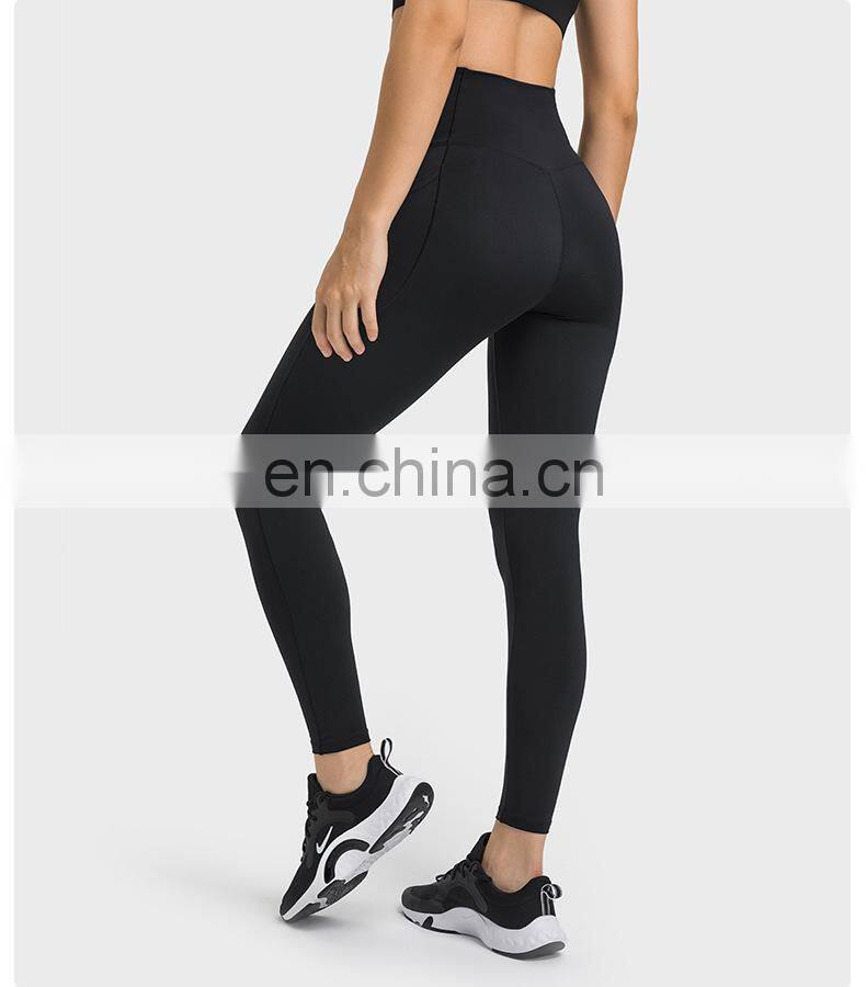 Double Side Pockets Anti-Rolling Sports Leggings Tights Custom Gym Fitness Pants High Waist Butt Lifting Yoga Leggings For Women