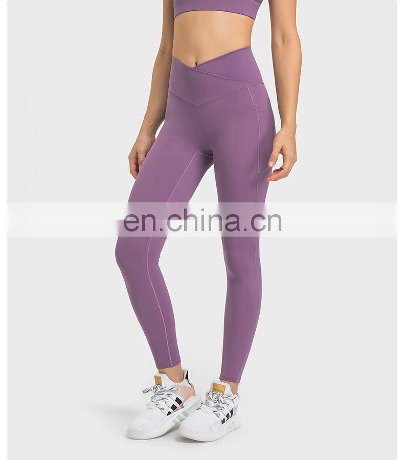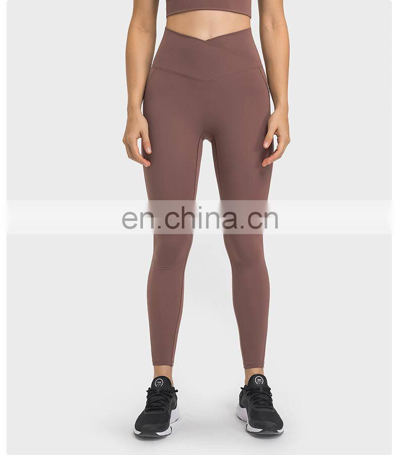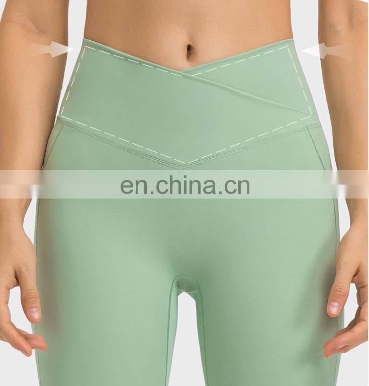 High Quality Sexy Running Leggings Custom Workout Wear Tights V Cross Waist Butt Pants Gym Fitness Yoga Leggings For Women