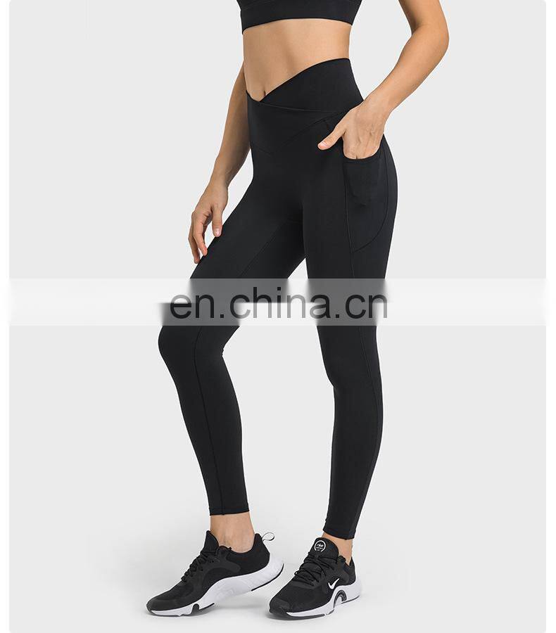 Newest V Cross Waist Sports Yoga Leggings Women Walking Running Crotchless Side Pocket Yoga Tights Gym Fitness Wear Pants