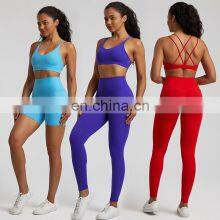 Wholesale Multicolor High Neck Strppy Sports Crop Bra Top High Waist Shorts Beautiful V Back Leggings Women Workout Fitness Wear