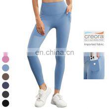 Anti-Rolling Double Side Pockets Sports Leggings Custom Gym Fitness Legging High Waist Butt Lifting Pants Women Yoga Leggings