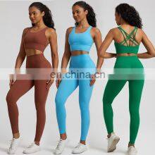 New Arrival Sexy Soft Women Thin Strap Cross Back Bra High Waist V Back Legging Pants Sports Yoga Gym Workout Suit Set Outfit