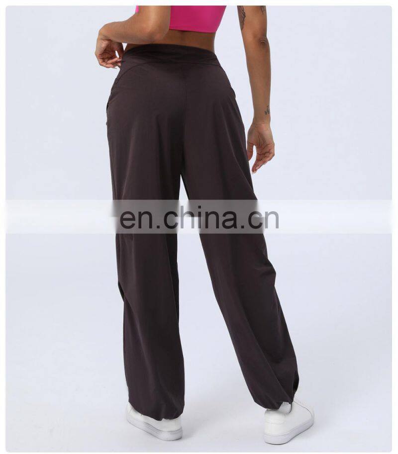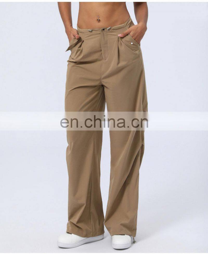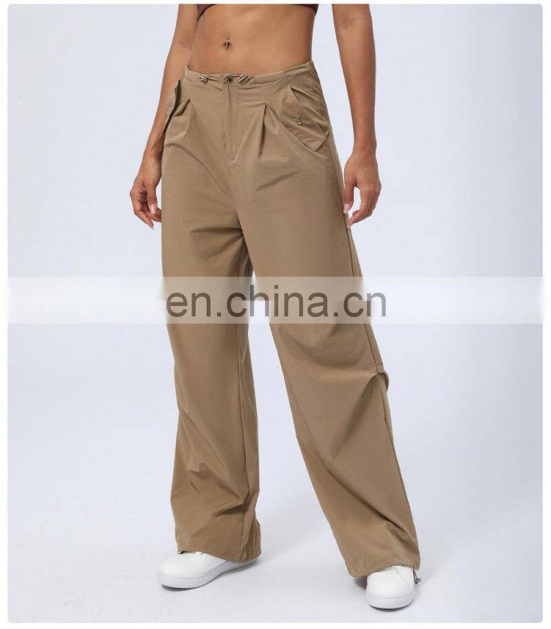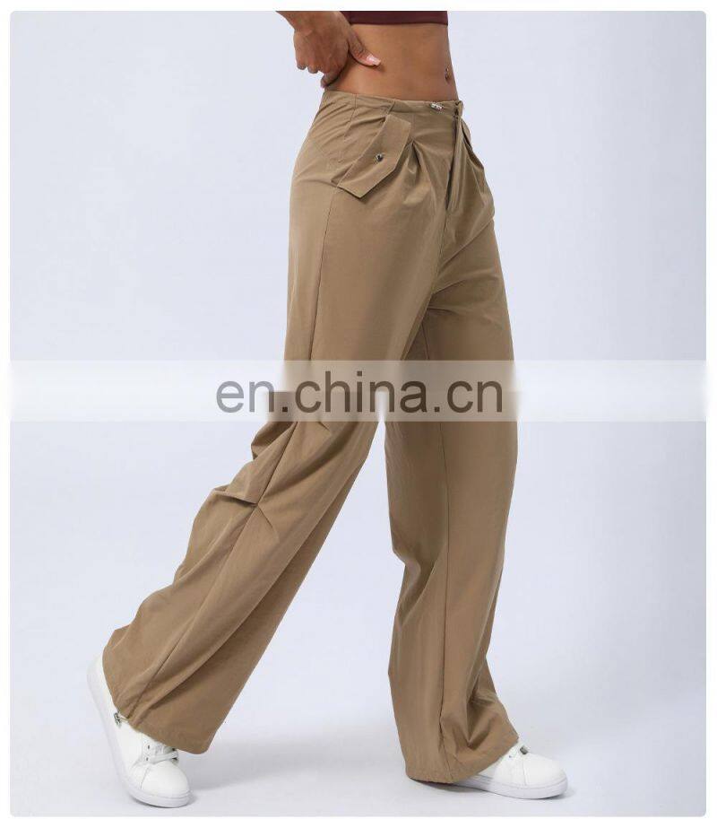 Fashion Quick Dry Sports Pants Custom Women's Clothings Loose Straight Trousers Casual High Waist Cargo Pant Women Pants