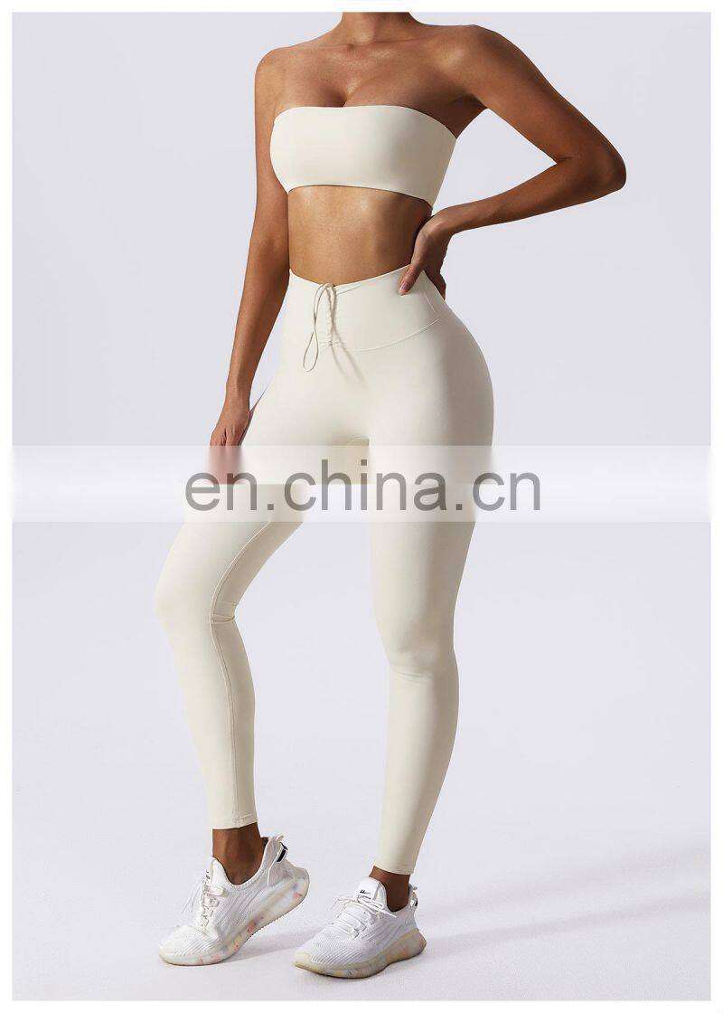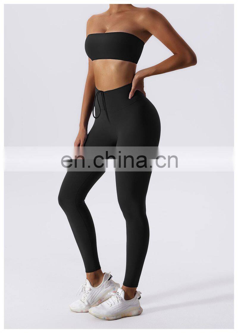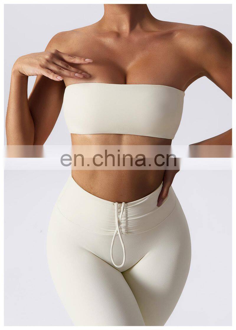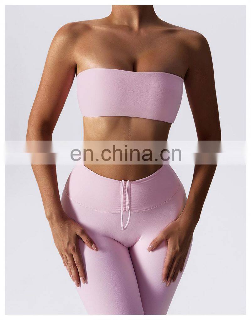 Home > Products > Gym Fitness Sets > New Women Sexy Workout Strapless Bandeau Tube Top Bra High Waist Scrunch Butt Lift Leggings 2 Piece Fitness Gym Yoga Suit Set