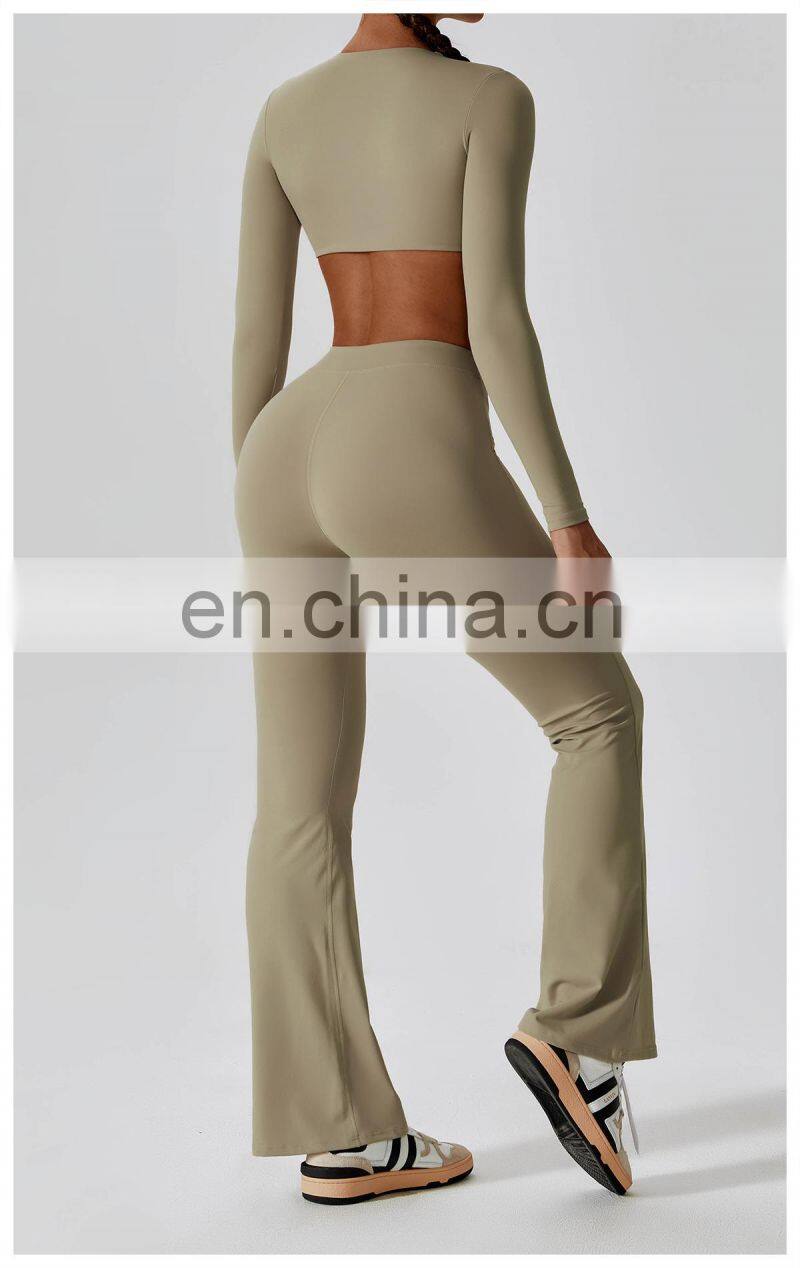 Wholesale Sports Clothing Long Sleeve Crop Top Flare Leggings 2 Piece Suit Custom Workout Wear Women Yoga Set Gym Fitness Sets