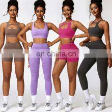 High Quality Sportswear 3 Piece Suit Quick Dry Breathable Women Clothing Gym Fitness Sets Sports Bra Crop Top Leggings Yoga Set