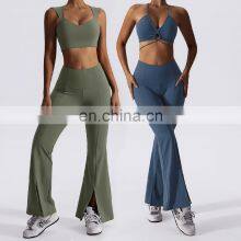Wholesale Sportswear Sets 2 Piece Sexy Workout Wear High Waist Flare Pants Sports Bra Custom Gym Fitness Yoga Set For Women