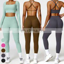 New Sports Outfits Custom Workout Wear Long Sleeve Ctop Top High Waist Leggings 2 Piece Suit Gym Fitness Sets Women Yoga Set