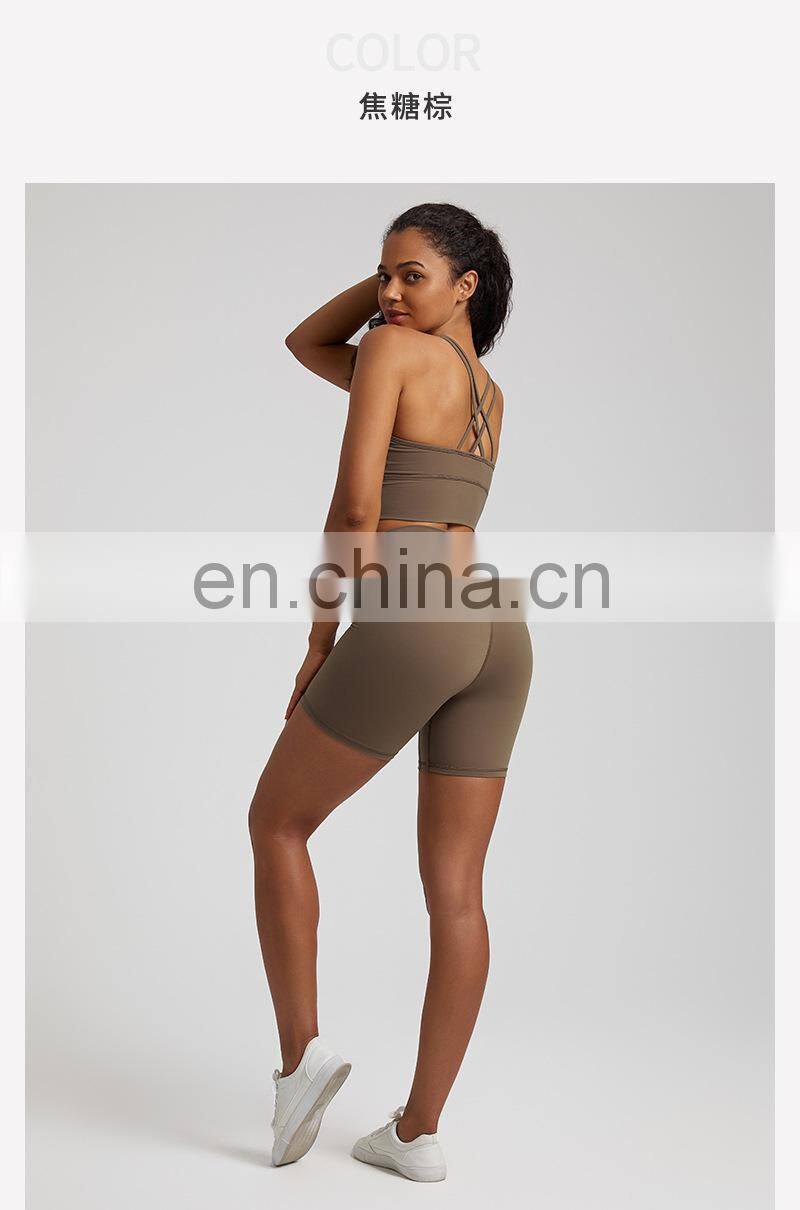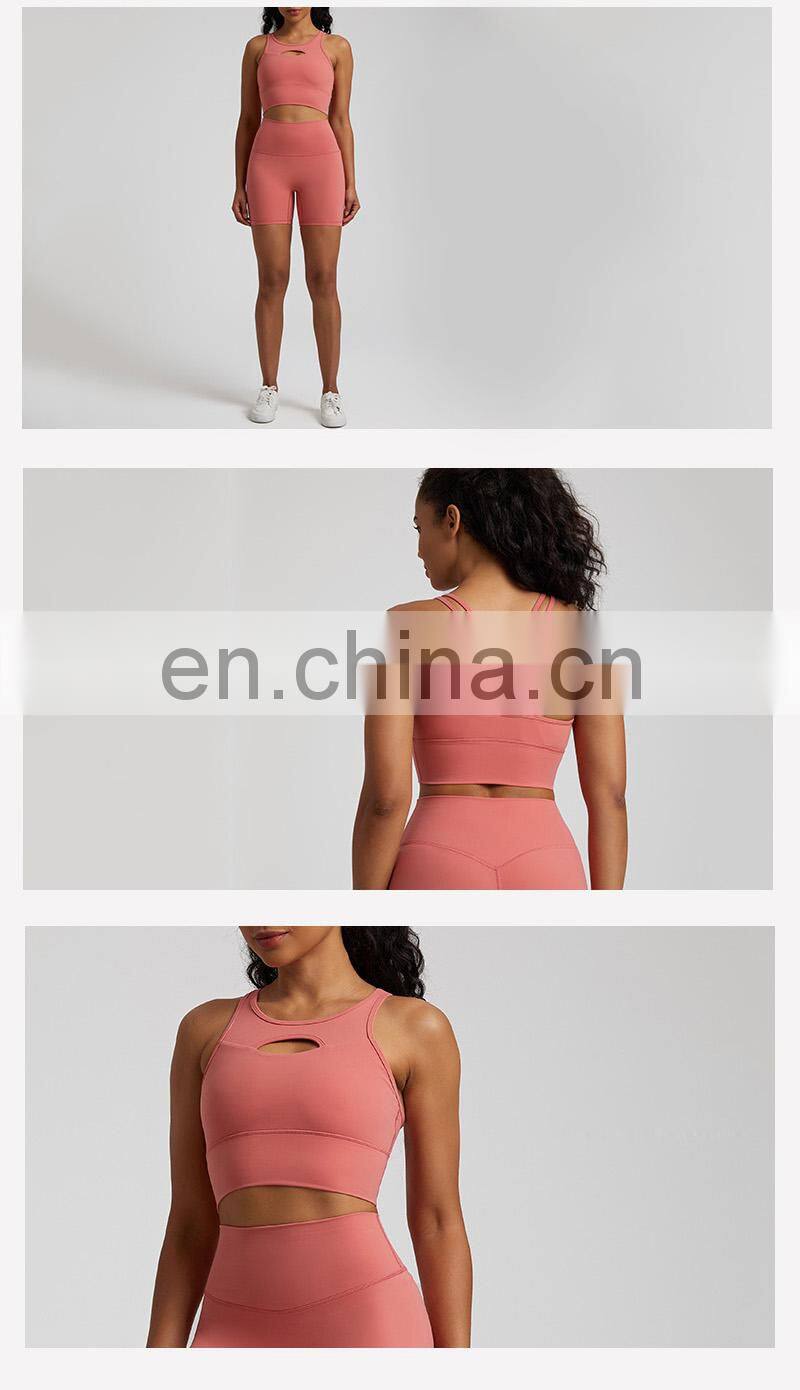 Nude Sexy Set Sport Bra High Waist Shorts Leggings 3 Piece Suit Custom Logo Workout Clothing Yoga Set Gym Fitness Sets For Women