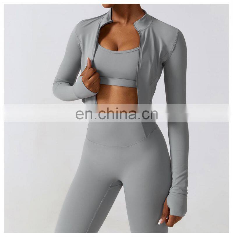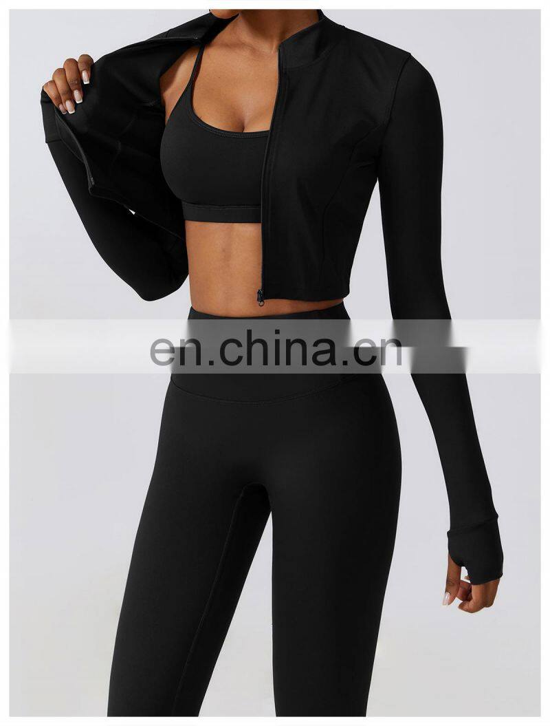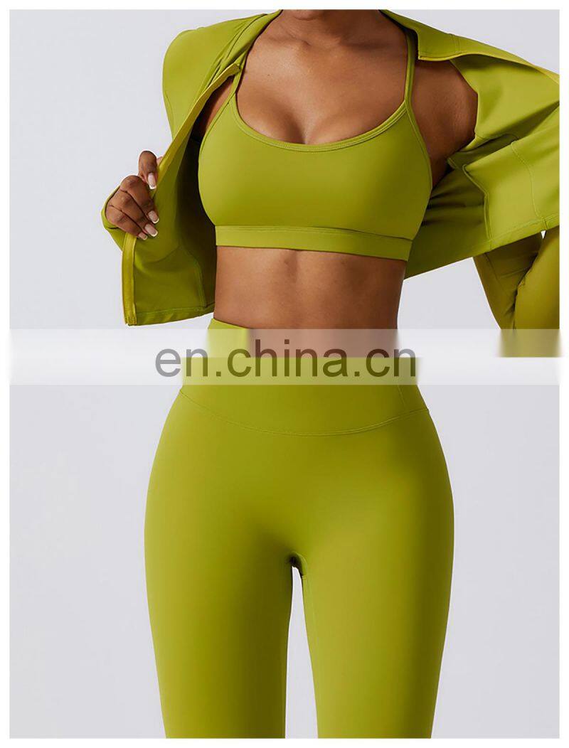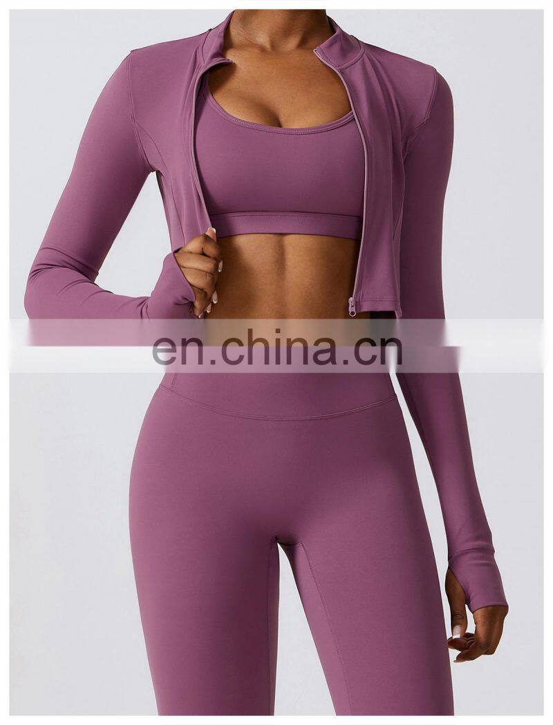 Sportswear Set Seamless Sport Bra Jacket Leggings 3 Piece Suit Custom Activewear Clothing Gym Fitness Yoga Sets For Women