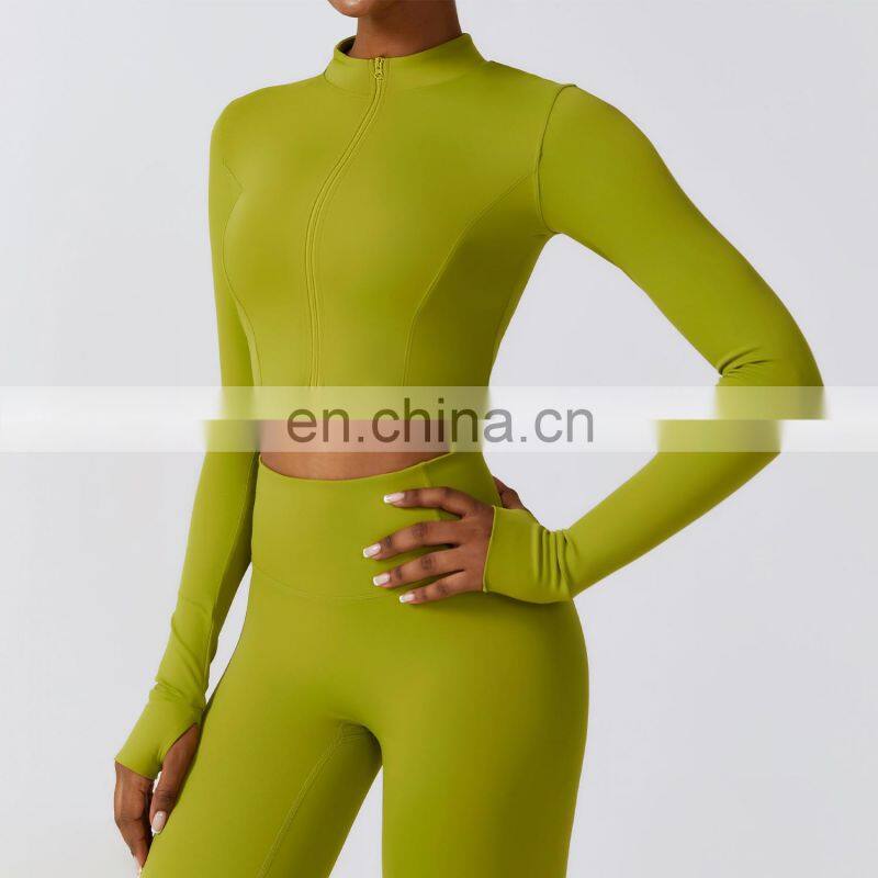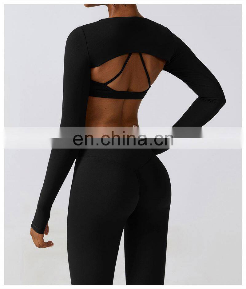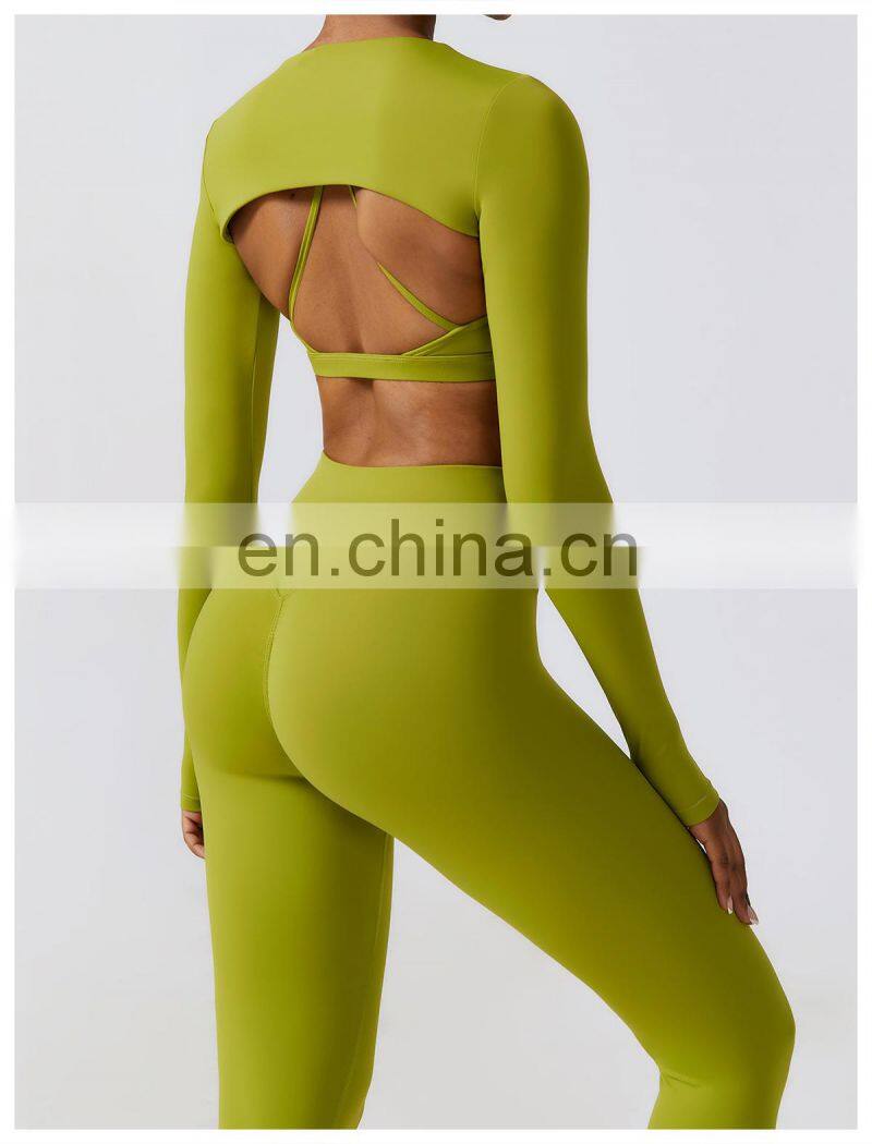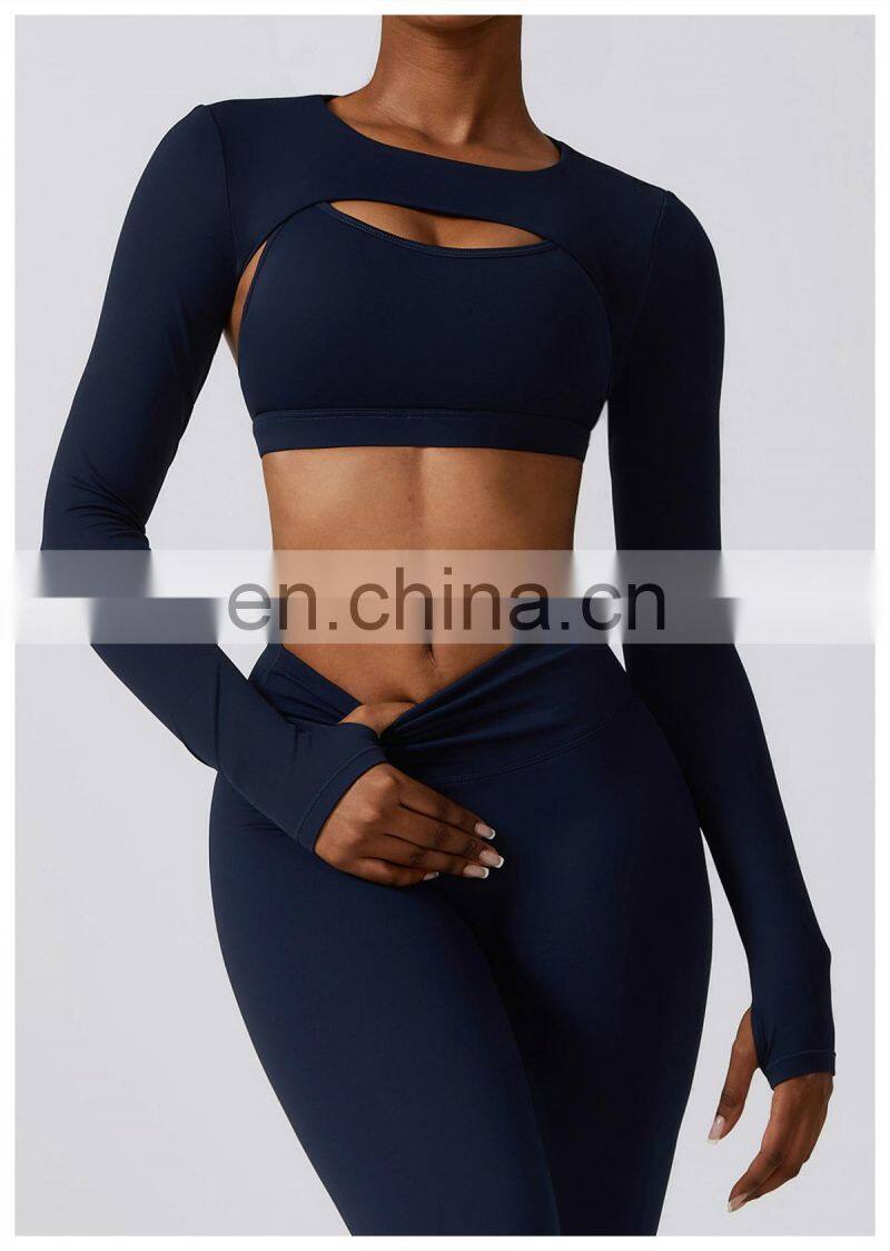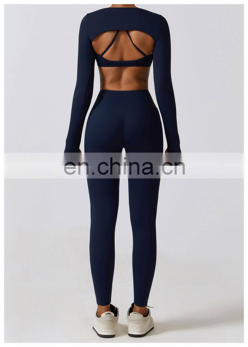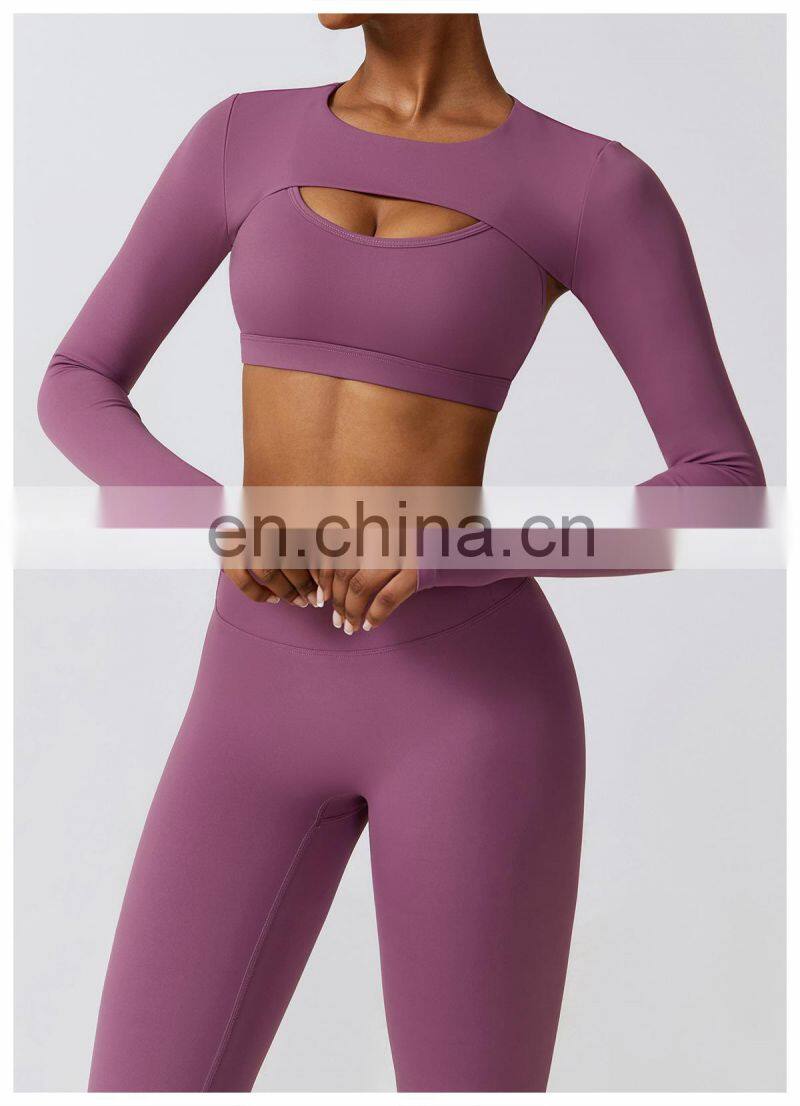 New Sports Outfits Custom Workout Wear Long Sleeve Ctop Top High Waist Leggings 2 Piece Suit Gym Fitness Sets Women Yoga Set