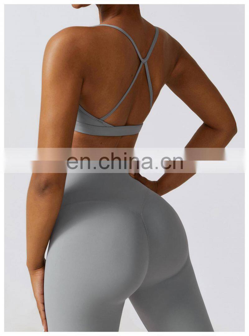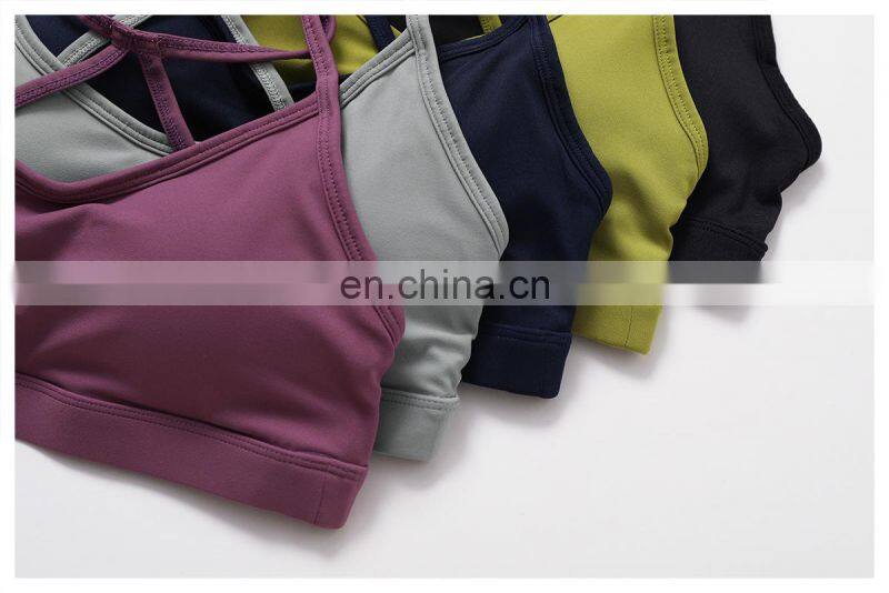 Custom Women Breathable Sexy Mesh Fixed Pads Sport Gym Yoga Bra Top Thin Strap Cross Back Quick Dry Workout Fitness Running Wear