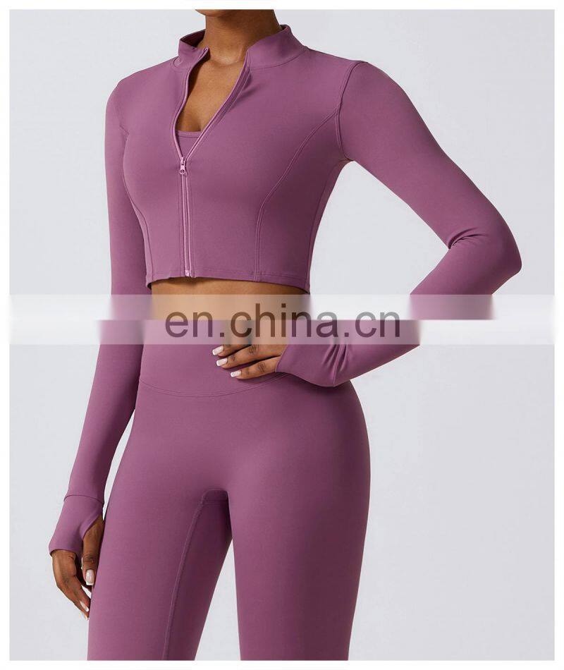 Custom Running Sports Clothing 2 Piece Suit Workout Wear Gym Fitness Sets Fleece Jacket Scrunch Butt Leggings Yoga Set For Women