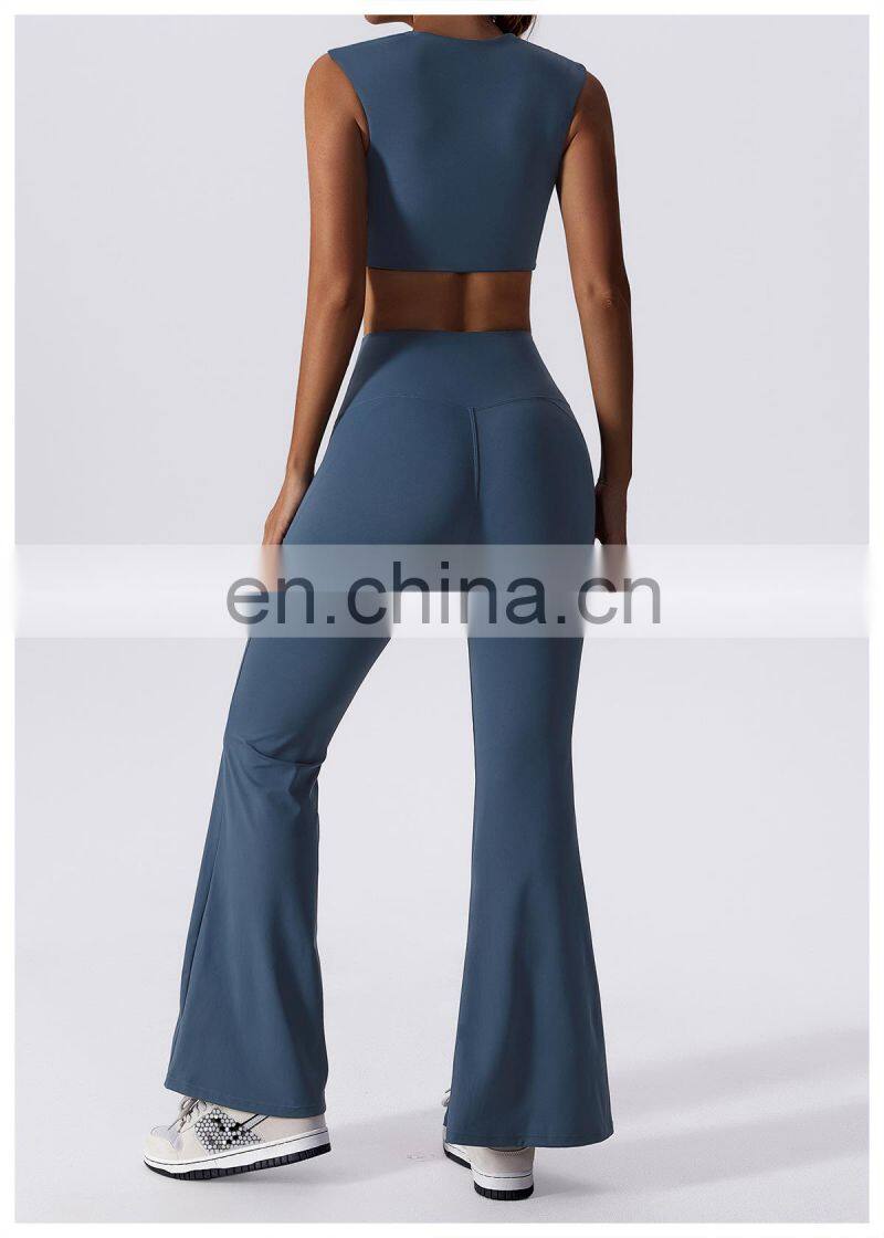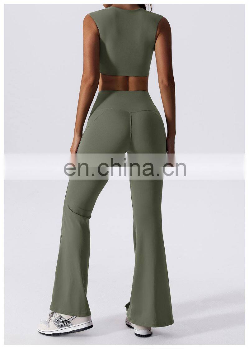 Custom High Quality Women Sports Clothing Outer Sports Waistcoat Straight Jogger Pants 2 Piece Suit Gym Fitness Sets Yoga Set