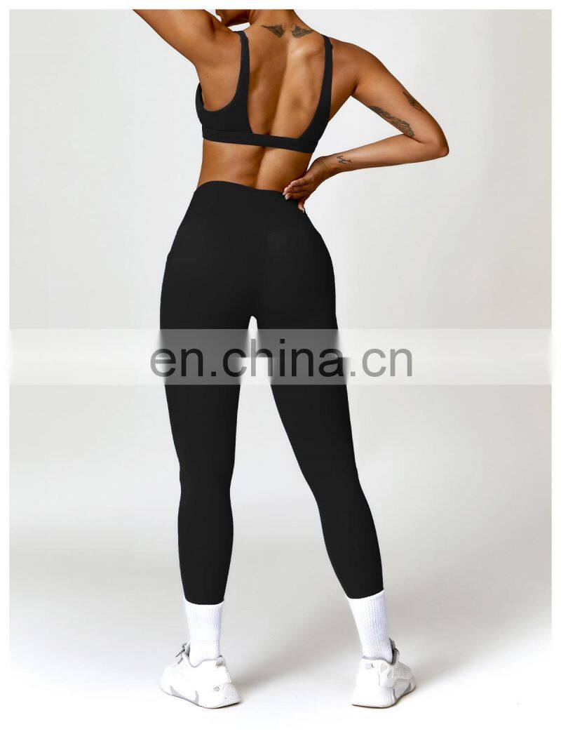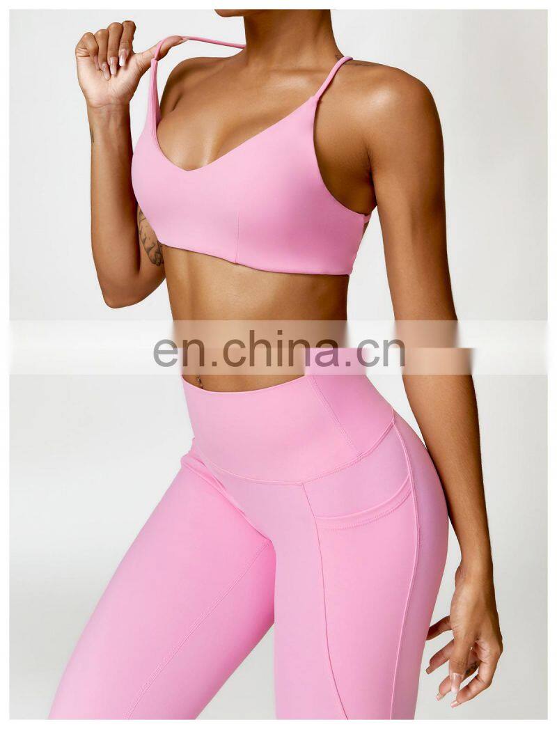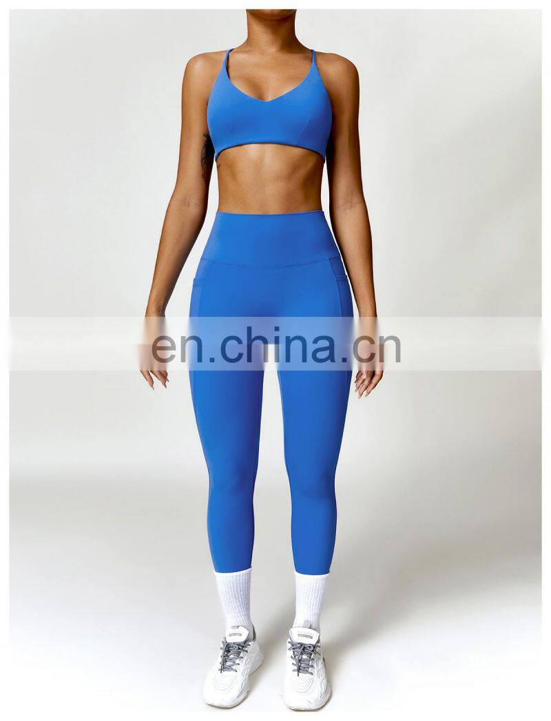 Wholesale Quick Dry Fitness Clothing Custom Women Workout Wear Sports Bra Pocket Leggings 2 Piece Yoga Set Gym Fitness Sets