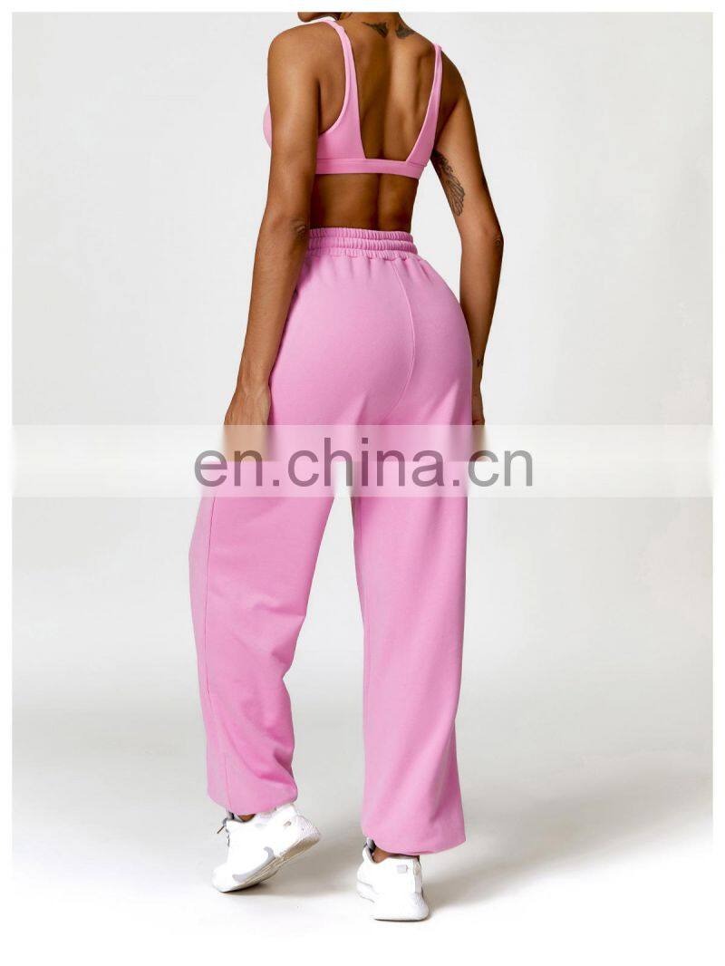 Casual Sports Sets High Support Shockproof Seamless Tank Top Sweatpants 2 Piece Suit Yoga Set Gym Fitness Sets For Women