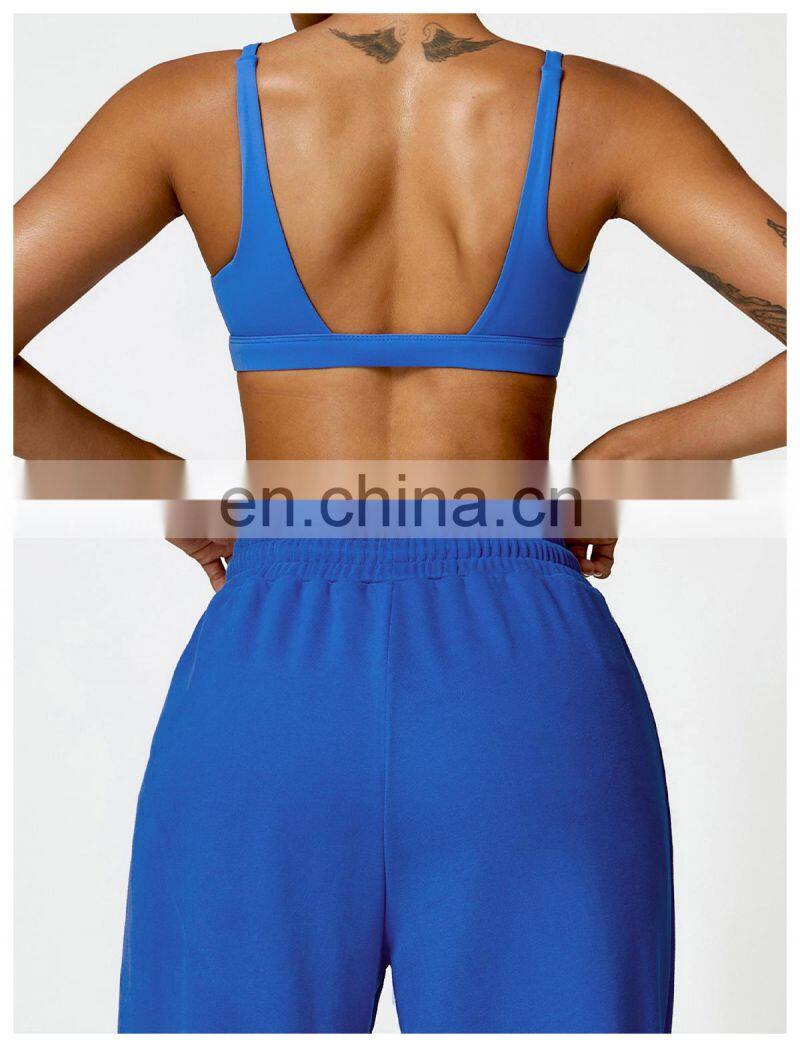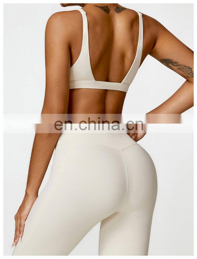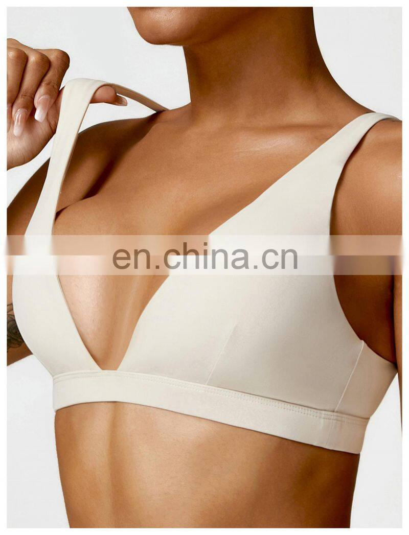 New Style Wholesale Custom Square Neck Sexy Deep V Back Adjustable Padded Sports Bra Top Ladies Fitness Gym Yoga Workout Wear