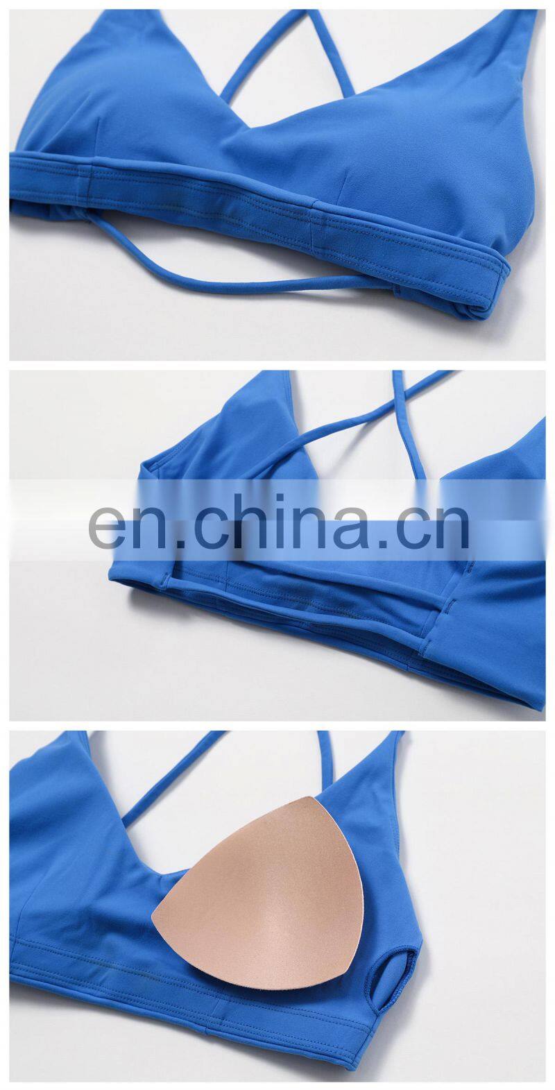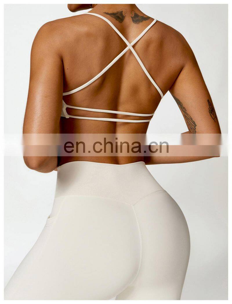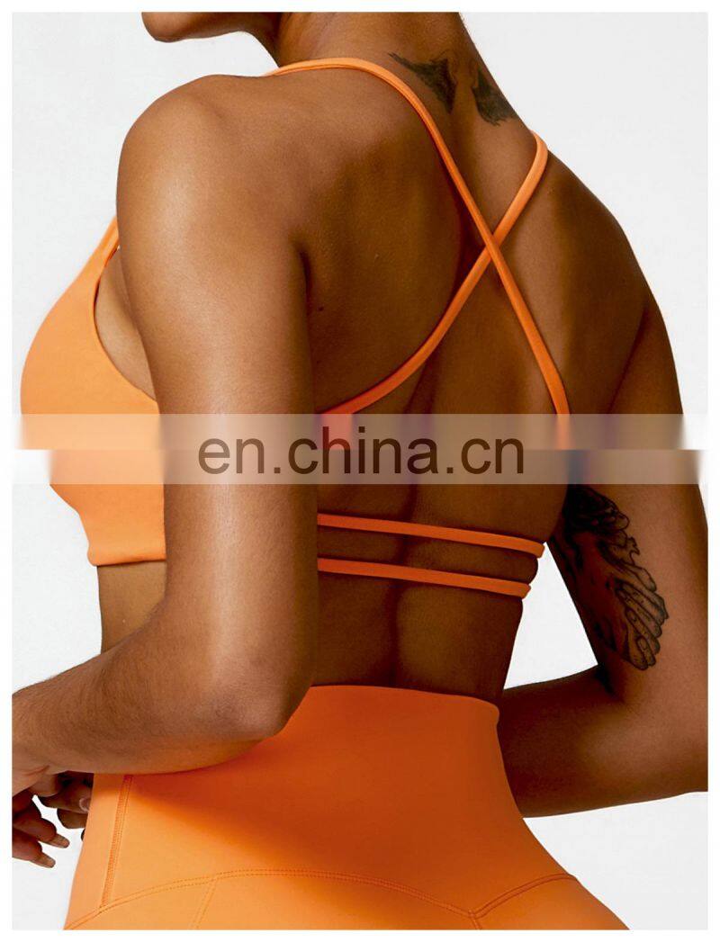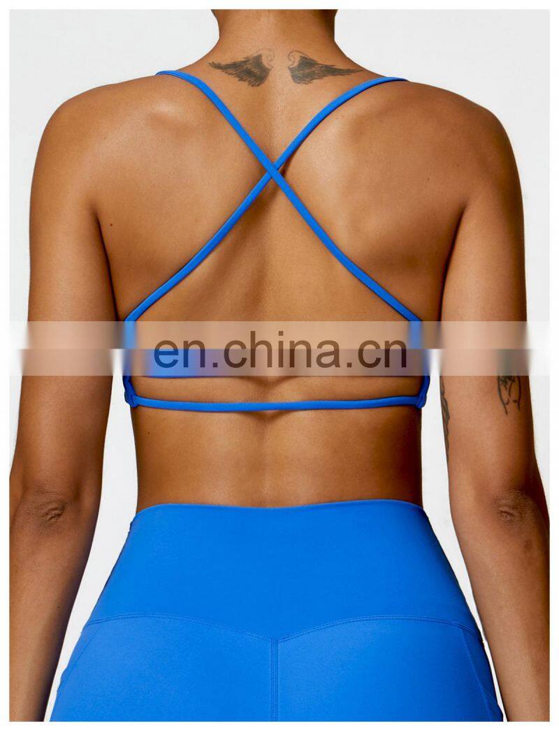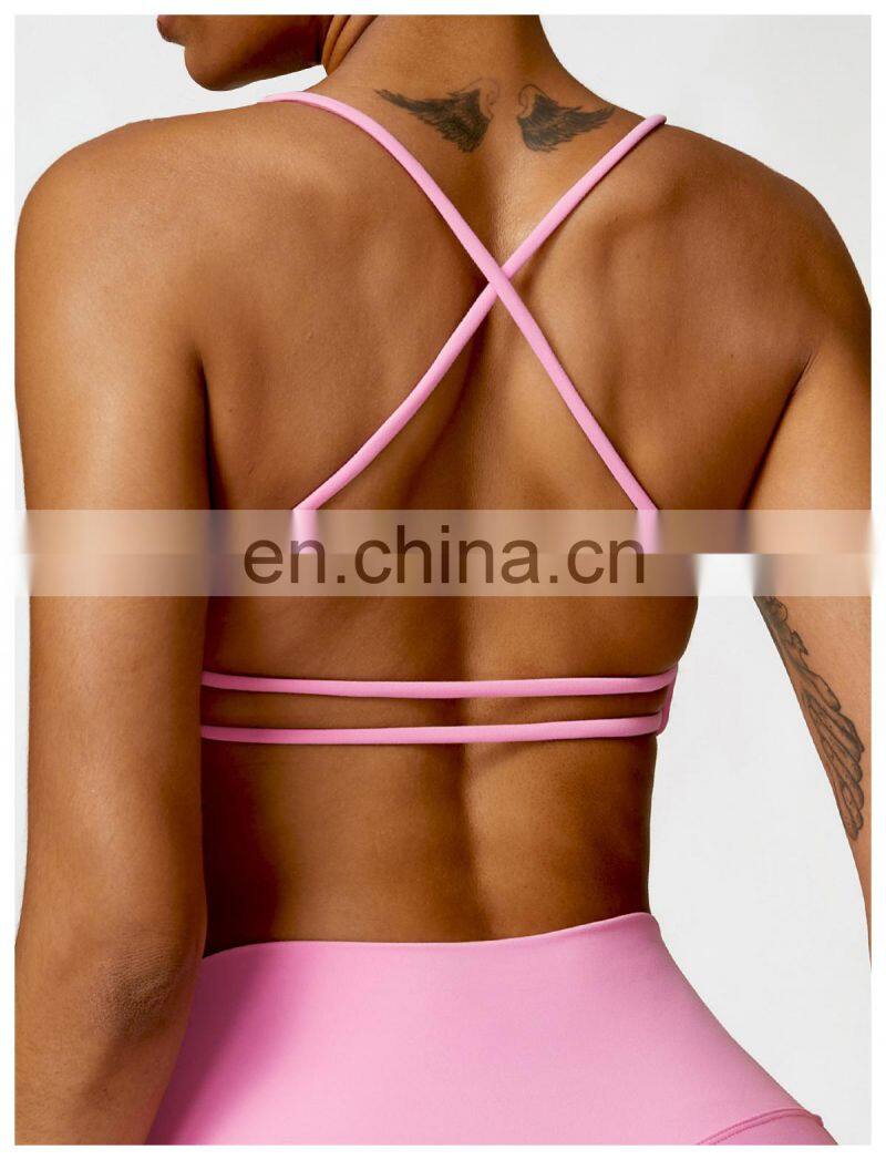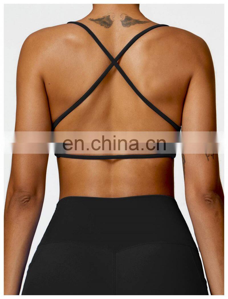 Sportswear Suppliers Customize Naked Cross Back High Support Padded Sports Yoga Bra Crop Top Ladies Gym Fitness Wear For Women