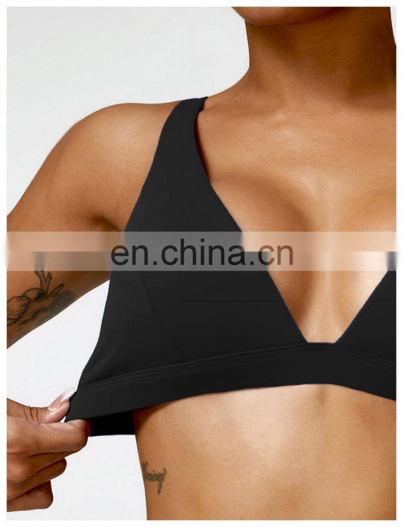 Ready To Ship Custom Logo Sexy Women V Neck Racer Back Sports Padded High Support Ladies Gym Fitness Running Wear Bra Cro Top