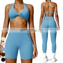 Quick Dry Fitness Running Clothing Sports Bra Shorts Leggings Custom Logo Workout Wear Gym Fitness Sets 2 Piece Yoga Set Women