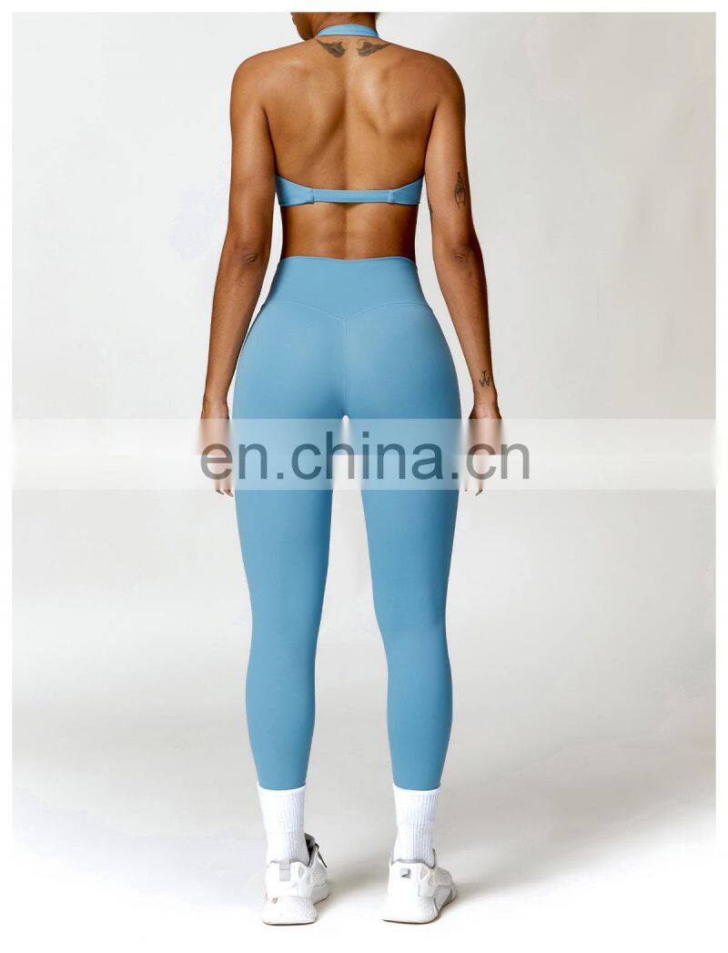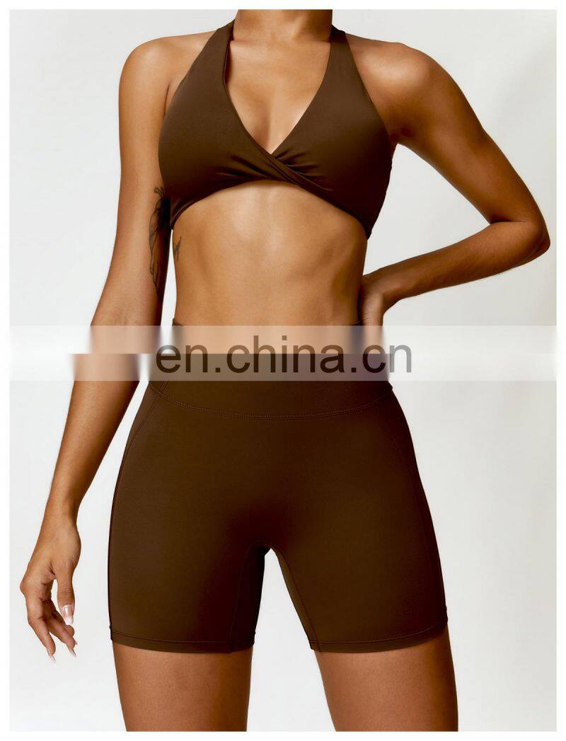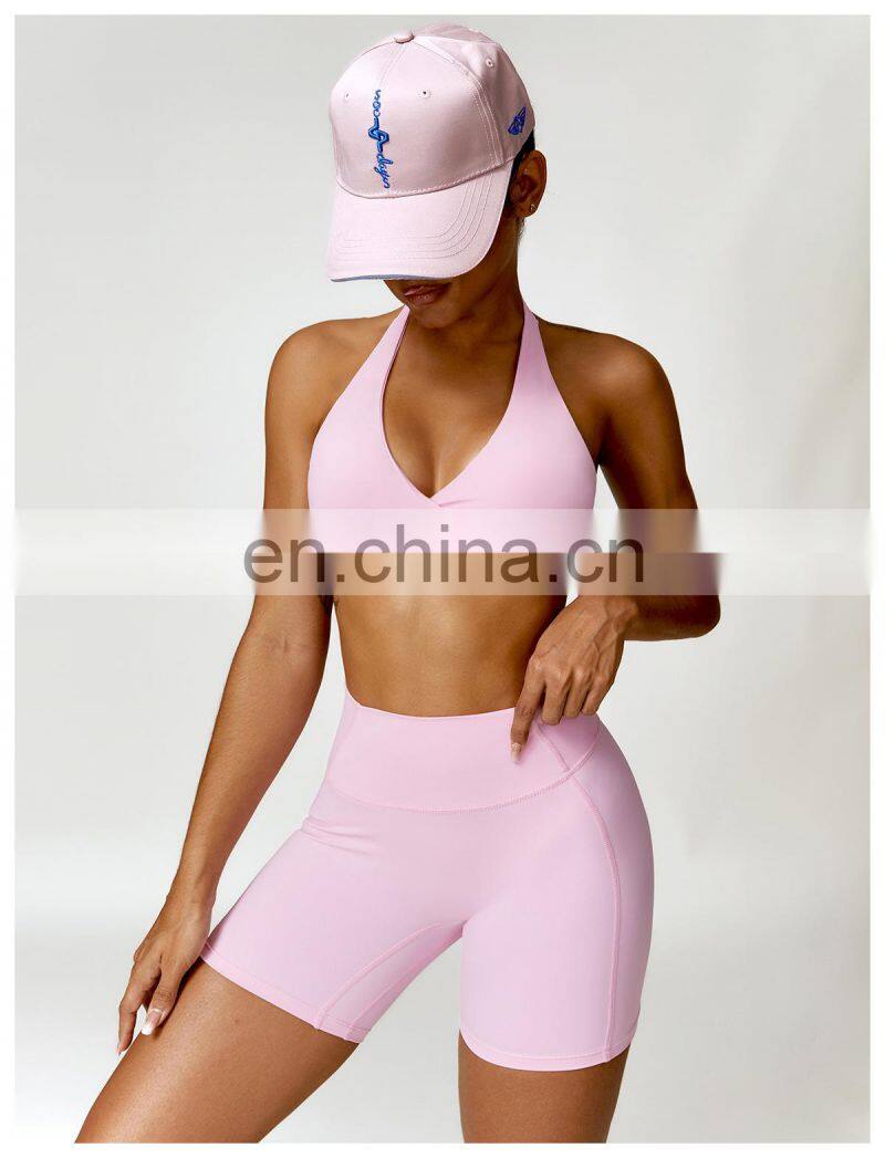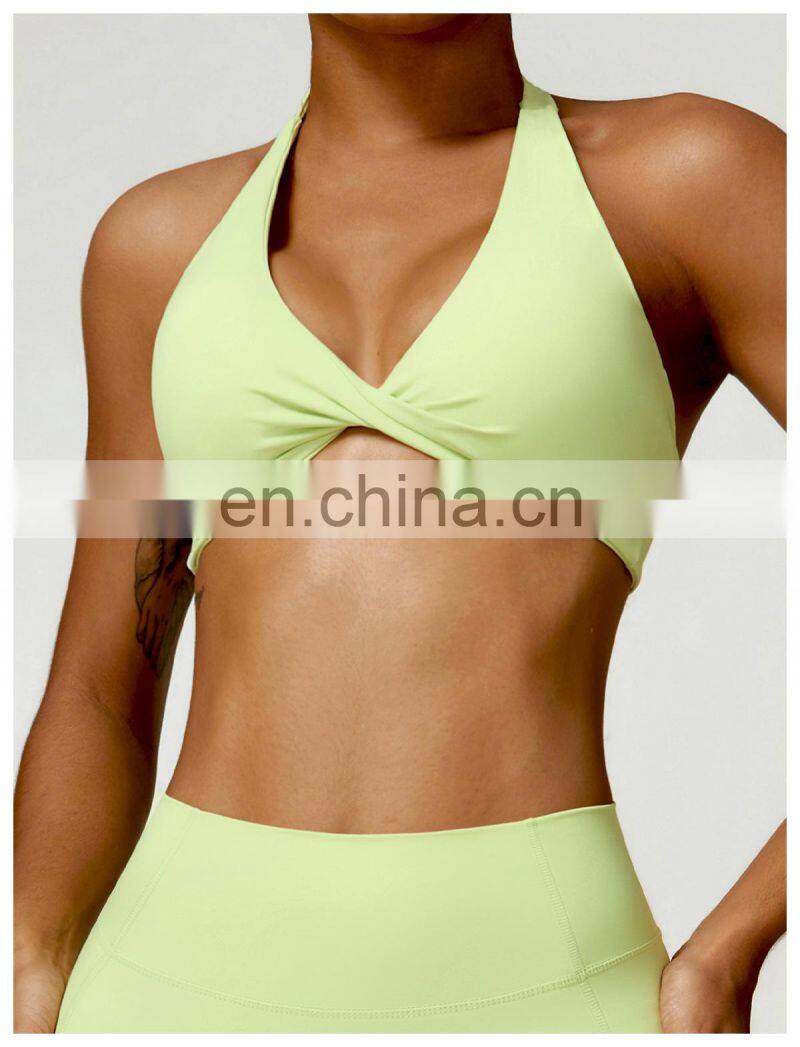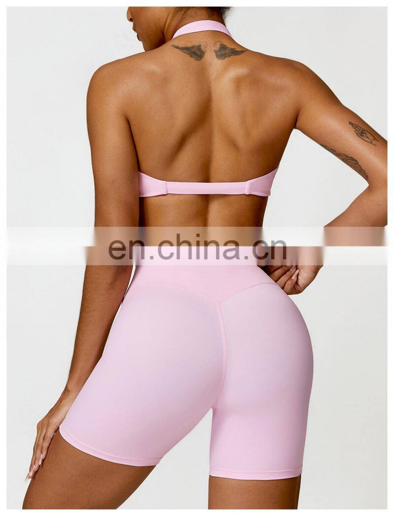 New Design Sexy Naked Soft Breathable Halter Neck Thin Straps Beauty Back Sports Yoga Wear Workout Fitness Bra Top For Women