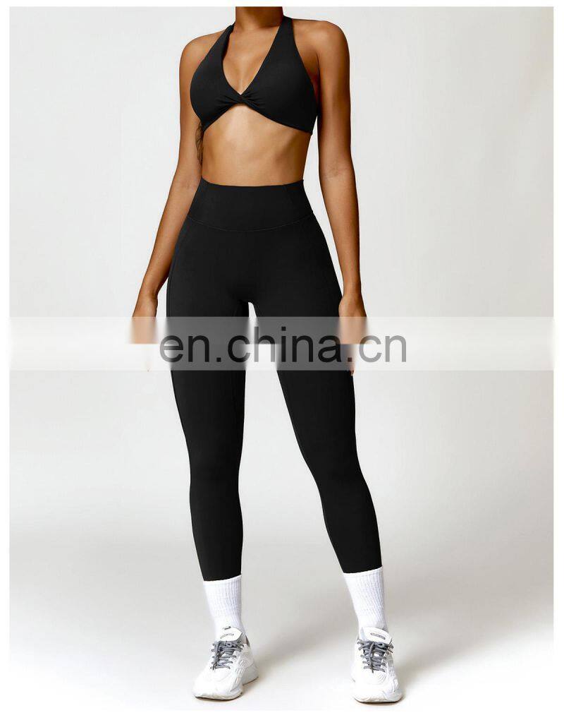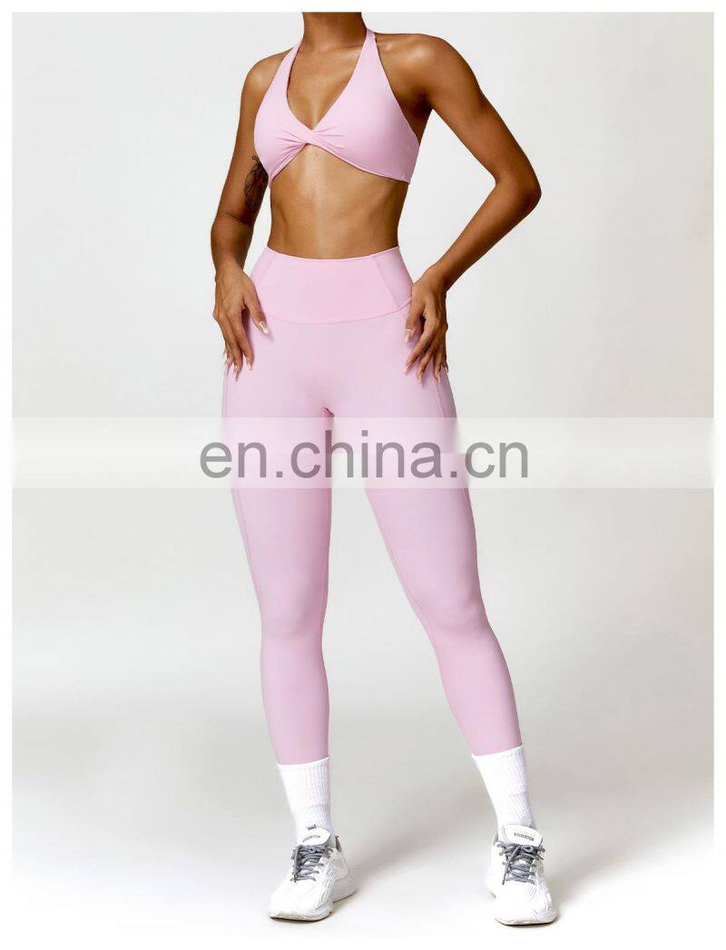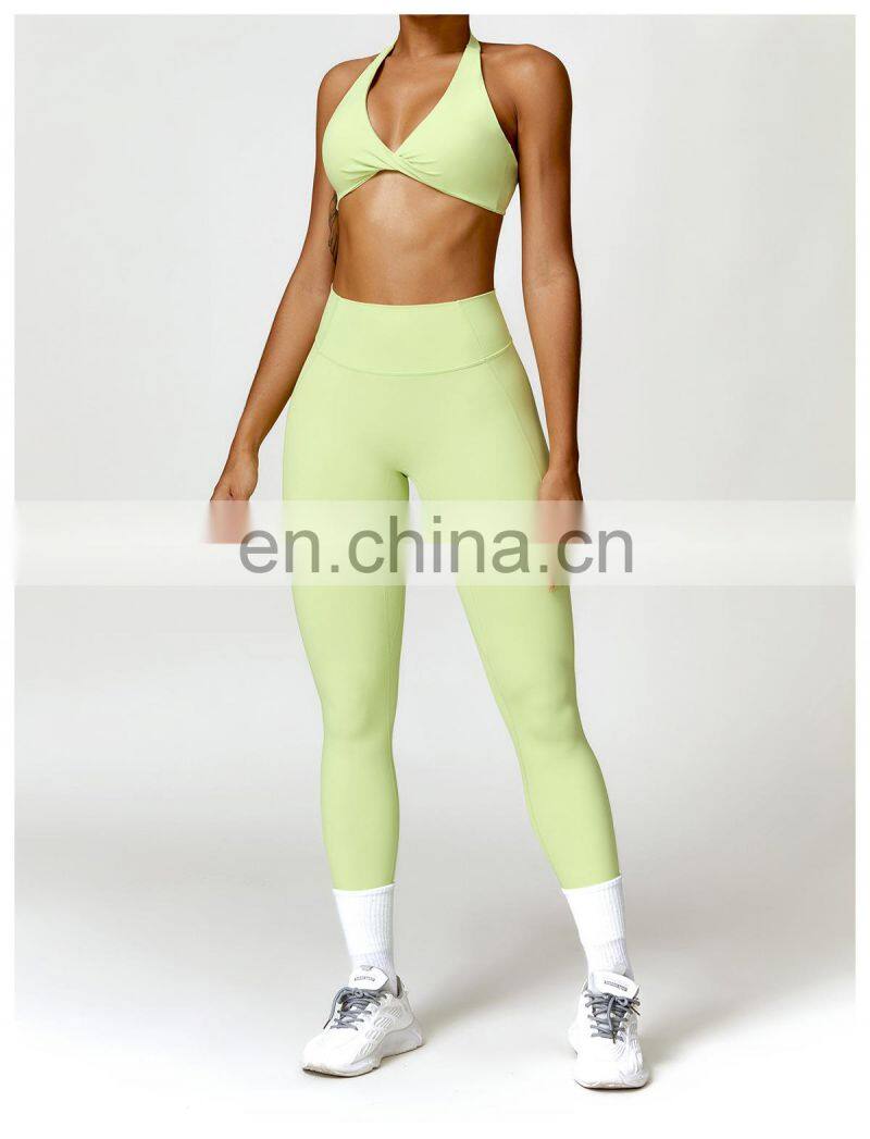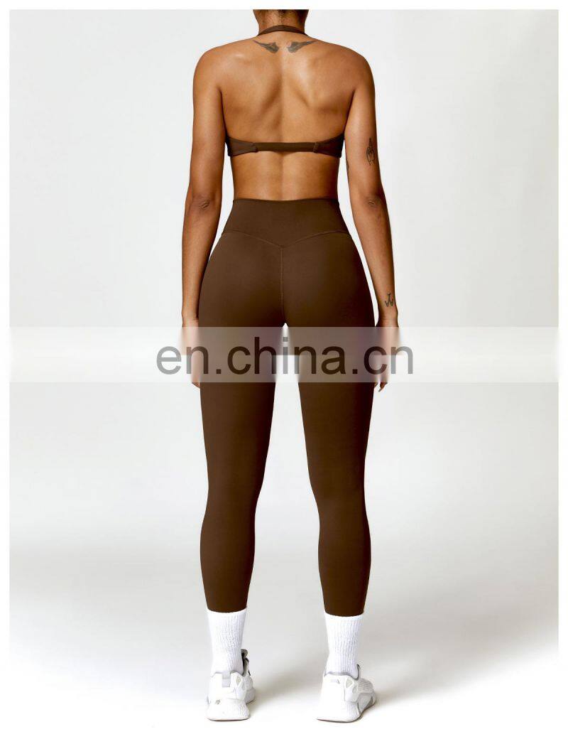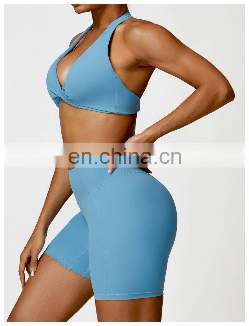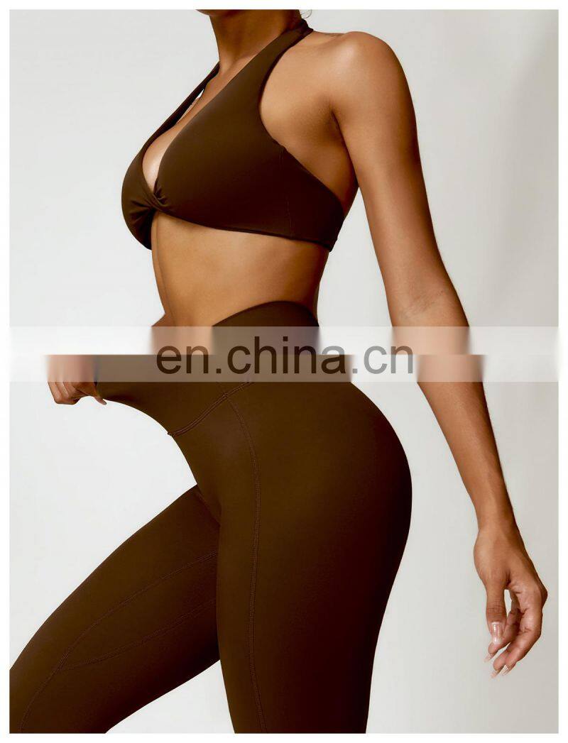 New Design Sexy Naked Soft Breathable Halter Neck Thin Straps Beauty Back Sports Yoga Wear Workout Fitness Bra Top For Women