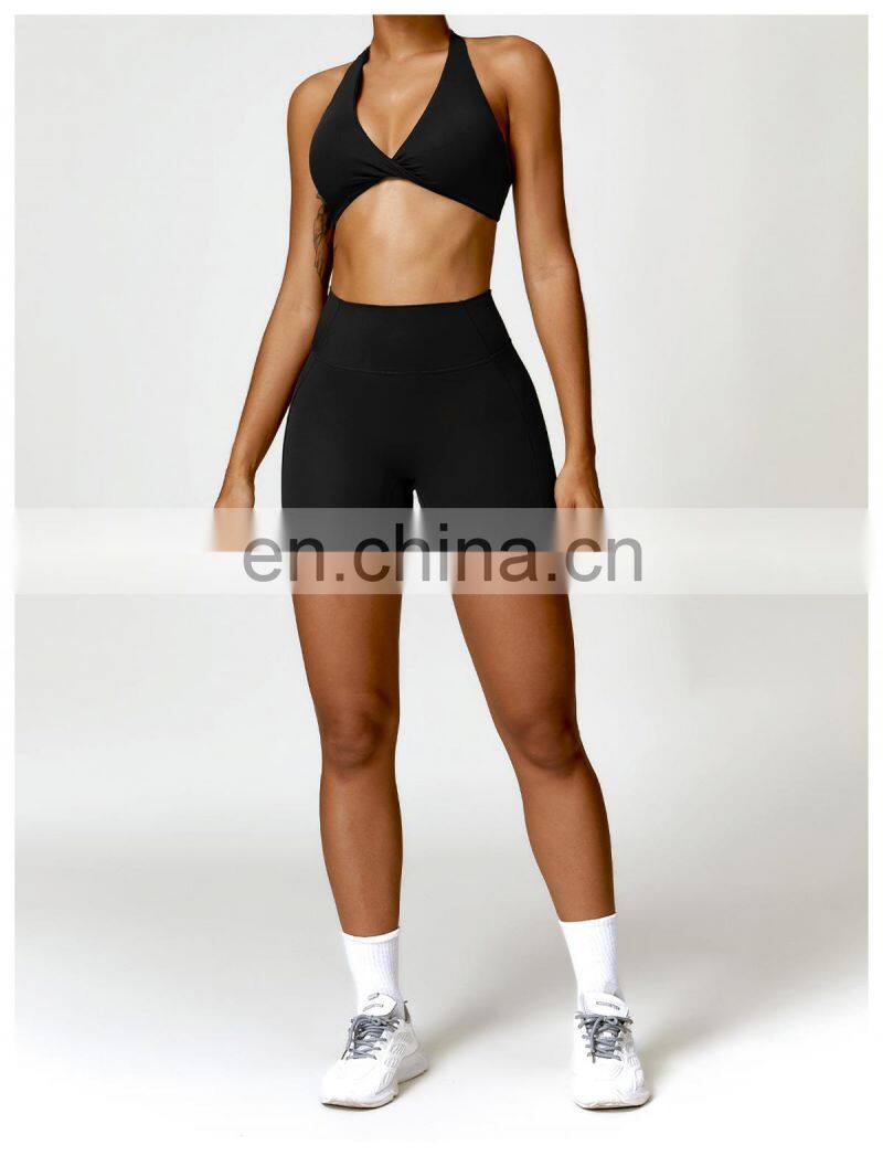 Home > Products > Gym Fitness Sets > Quick Dry Fitness Running Clothing Sports Bra Shorts Leggings Custom Logo Workout Wear Gym Fitness Sets 2 Piece Yoga Set Women