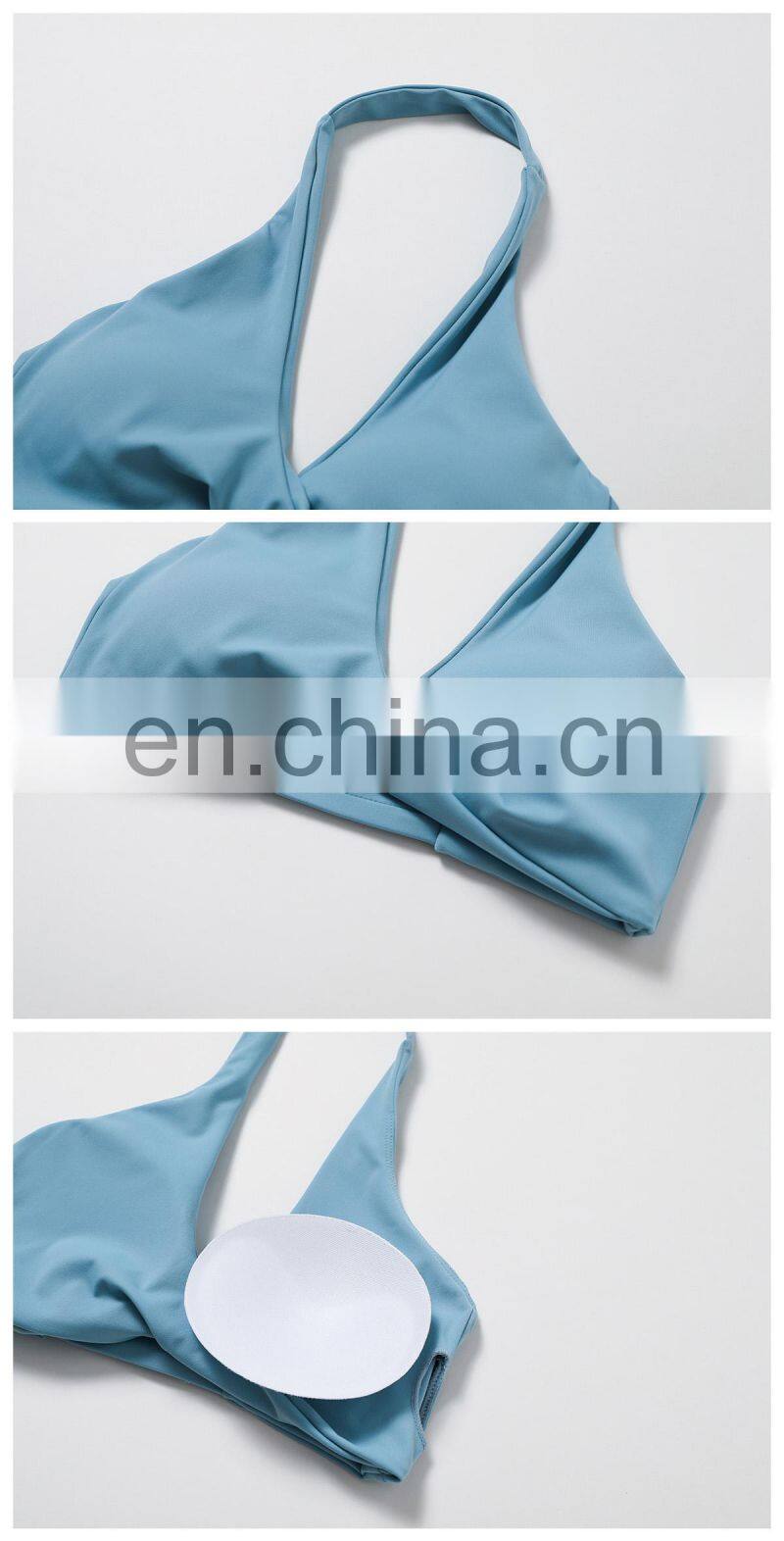 Blank Custom Sexy Backless Open Back Fitness Gym Sports Bra Casual Halter Neck Nude Soft Women Yoga Pilates Wear Fixed Pads Bra