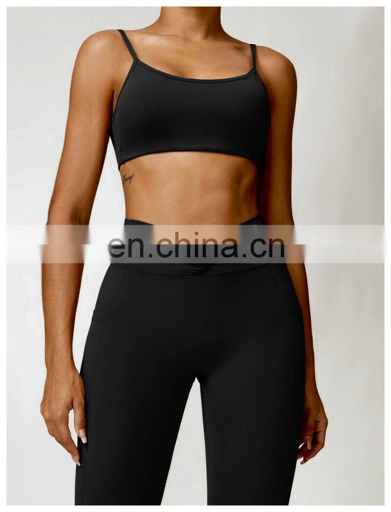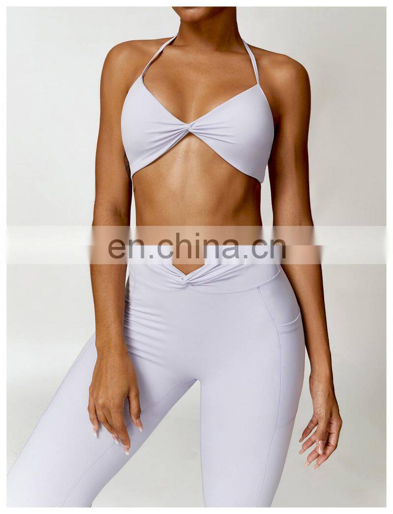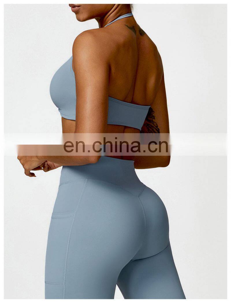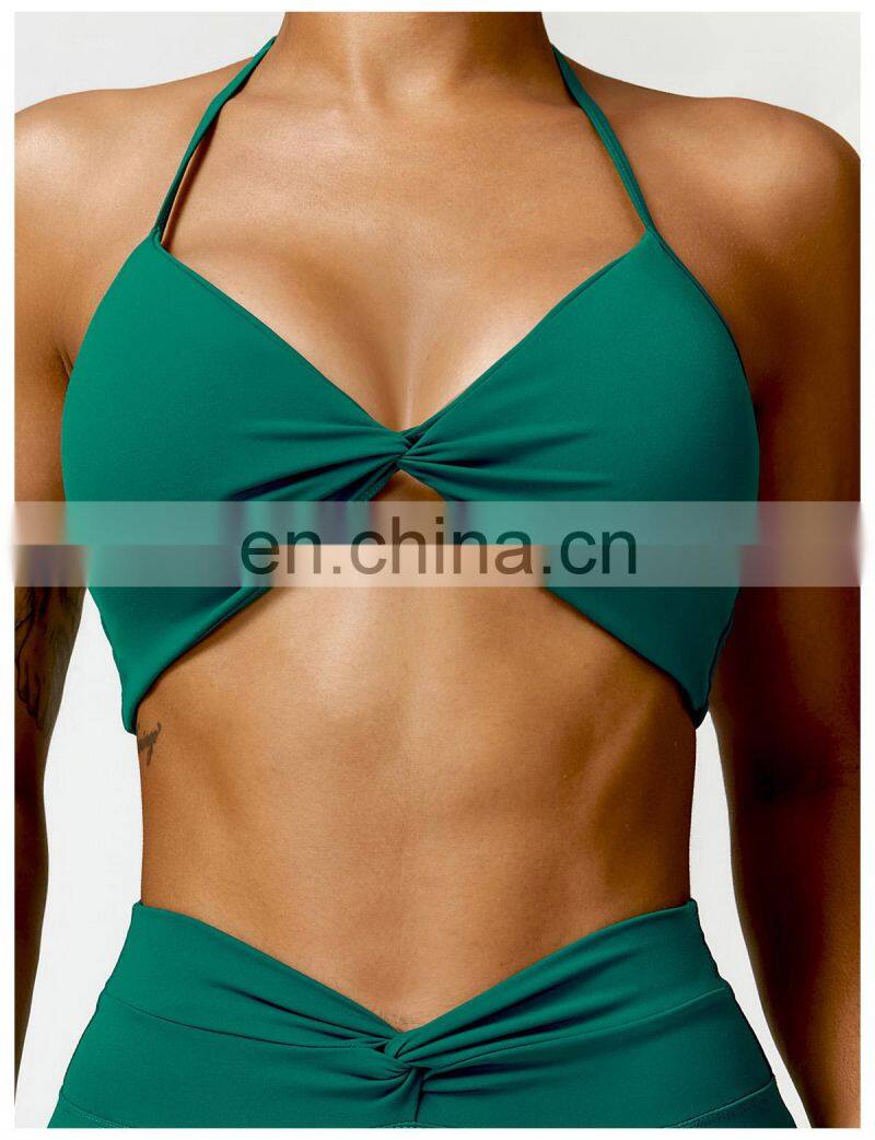 New Design Sexy Naked Soft Breathable Halter Neck Thin Straps Beauty Back Sports Yoga Wear Workout Fitness Bra Top For Women