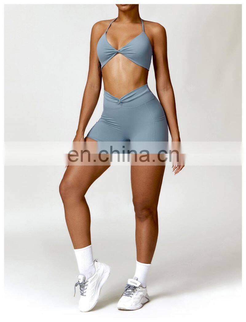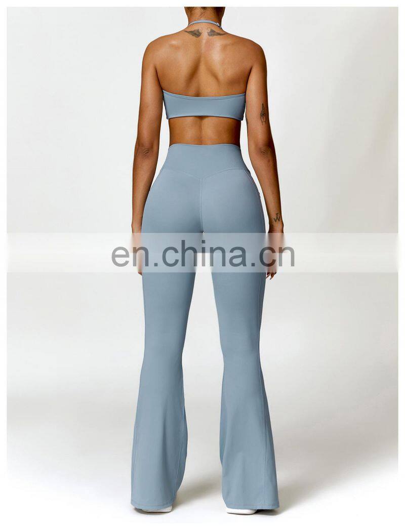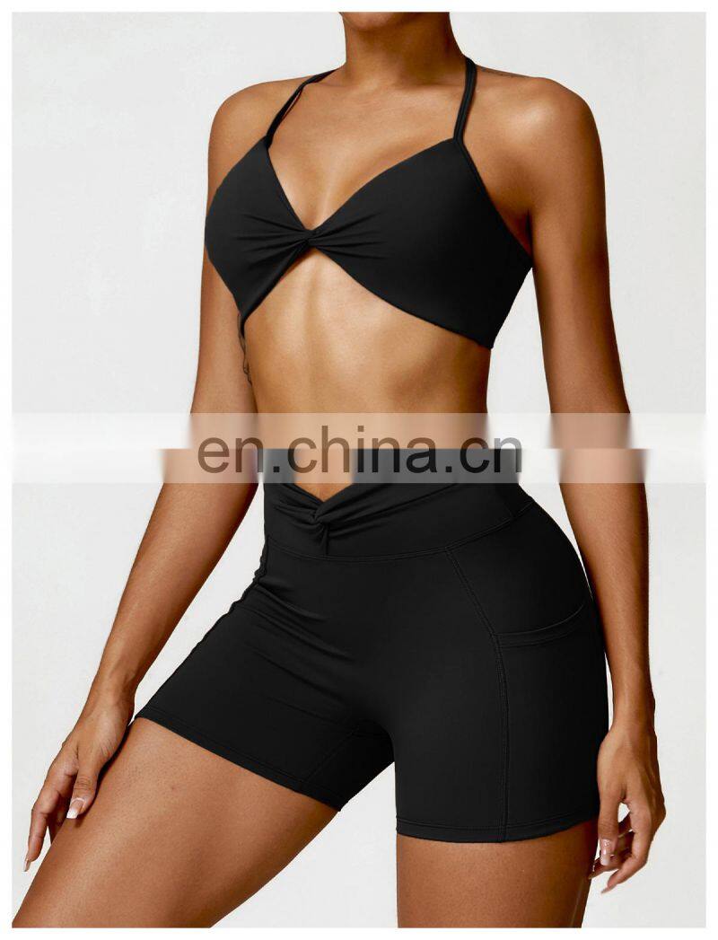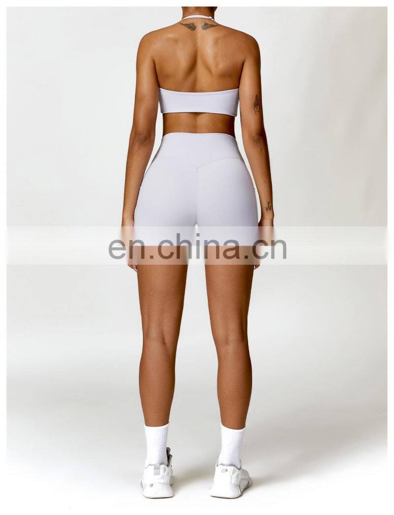 New Design Sexy Naked Soft Breathable Halter Neck Thin Straps Beauty Back Sports Yoga Wear Workout Fitness Bra Top For Women
