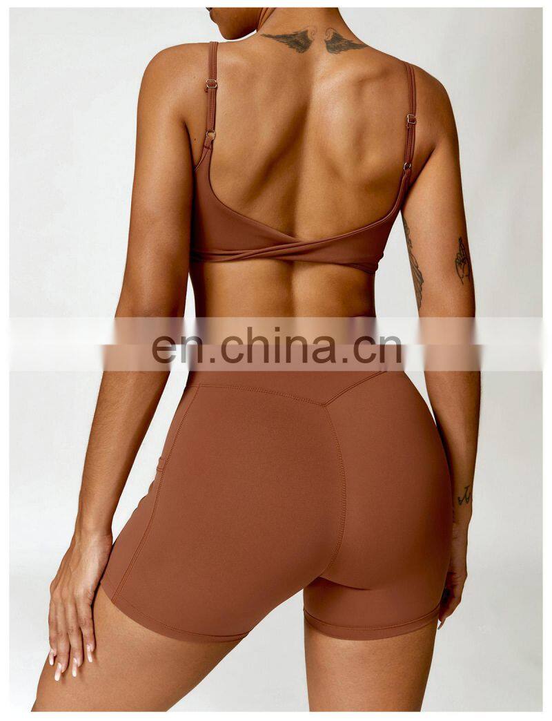 Sportswear Suppliers Customize Naked Cross Back High Support Padded Sports Yoga Bra Crop Top Ladies Gym Fitness Wear For Women