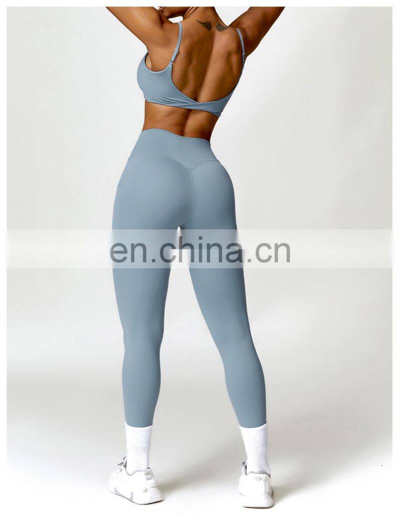 New Style Wholesale Custom Square Neck Sexy Deep V Back Adjustable Padded Sports Bra Top Ladies Fitness Gym Yoga Workout Wear