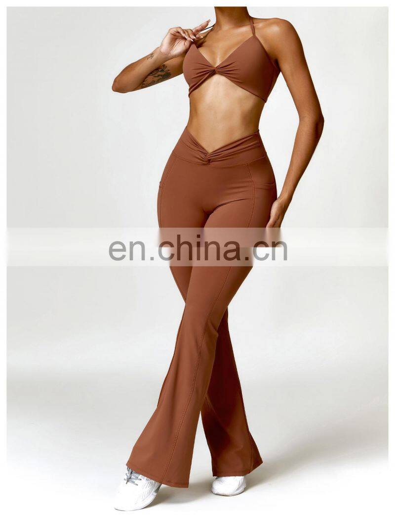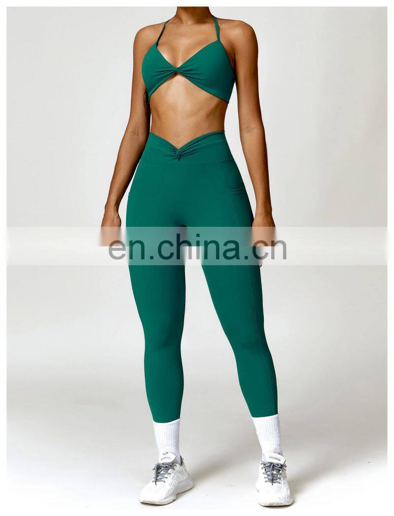 OEM Fashion Sexy V Neck Bodybuilding Gym Fitness Yoga Bra Top Beauty Back Workout Sports Pilates Dance Wear Clothes For Women