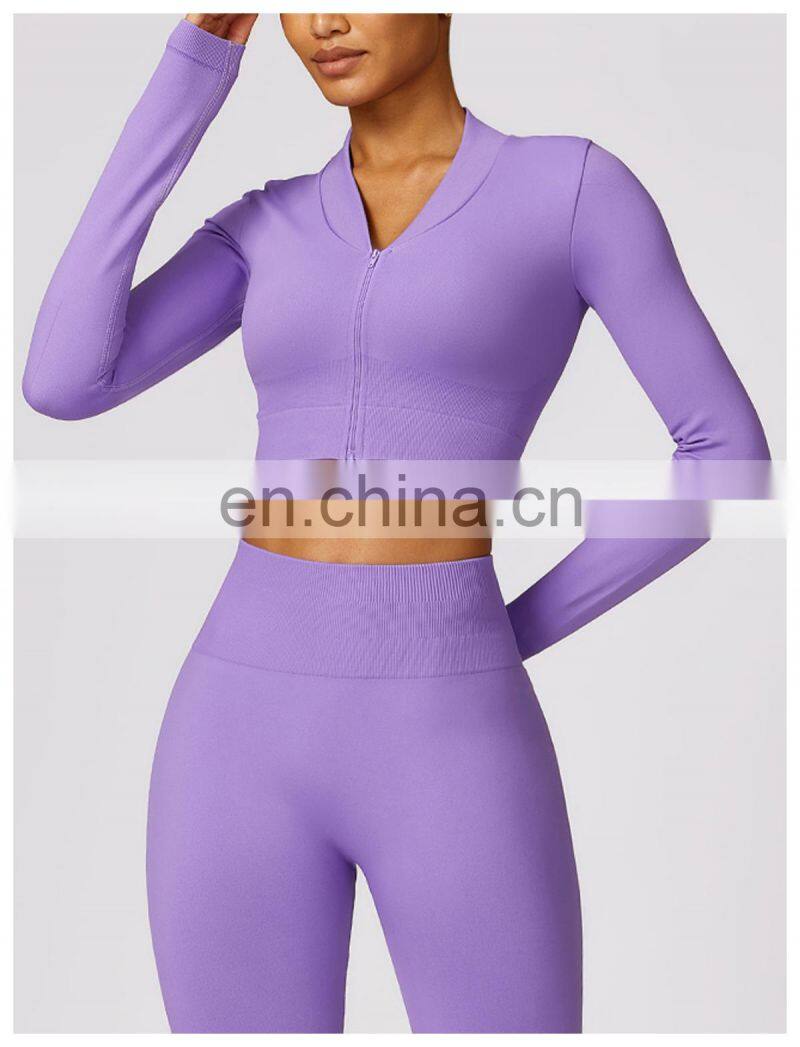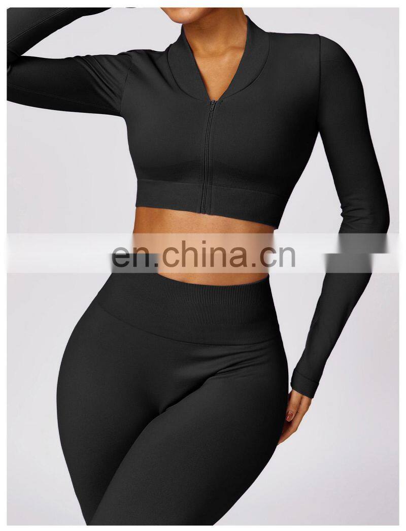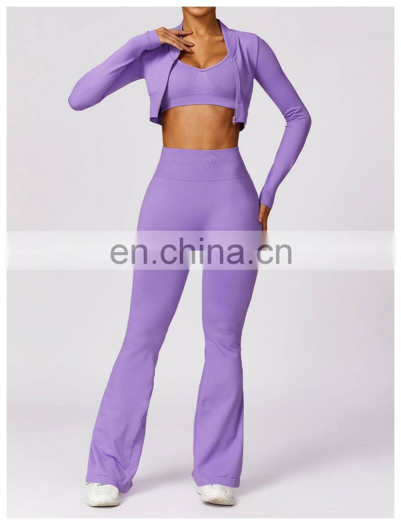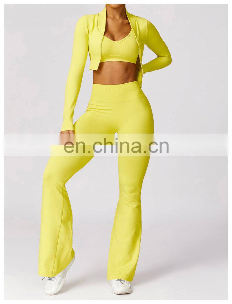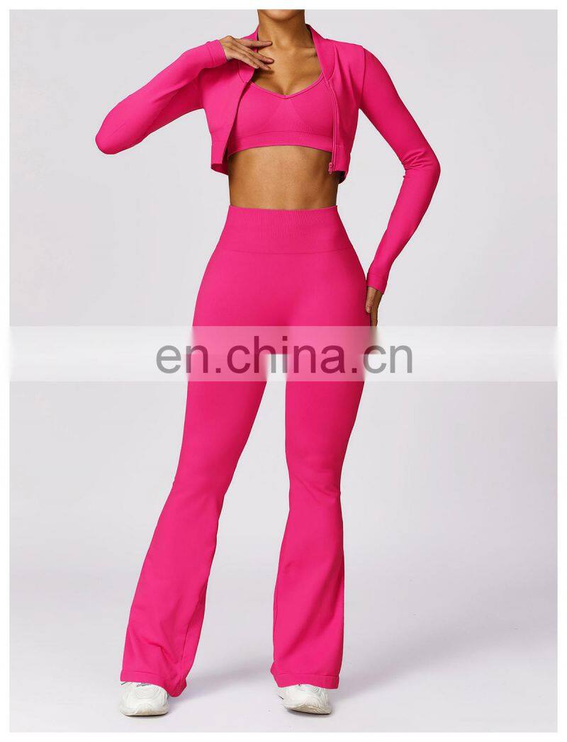 Sportswear Set Seamless Sport Bra Jacket Leggings 3 Piece Suit Custom Activewear Clothing Gym Fitness Yoga Sets For Women