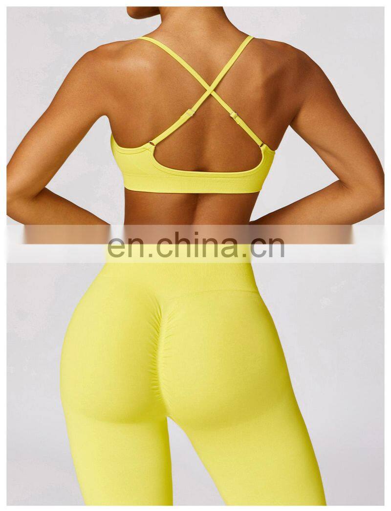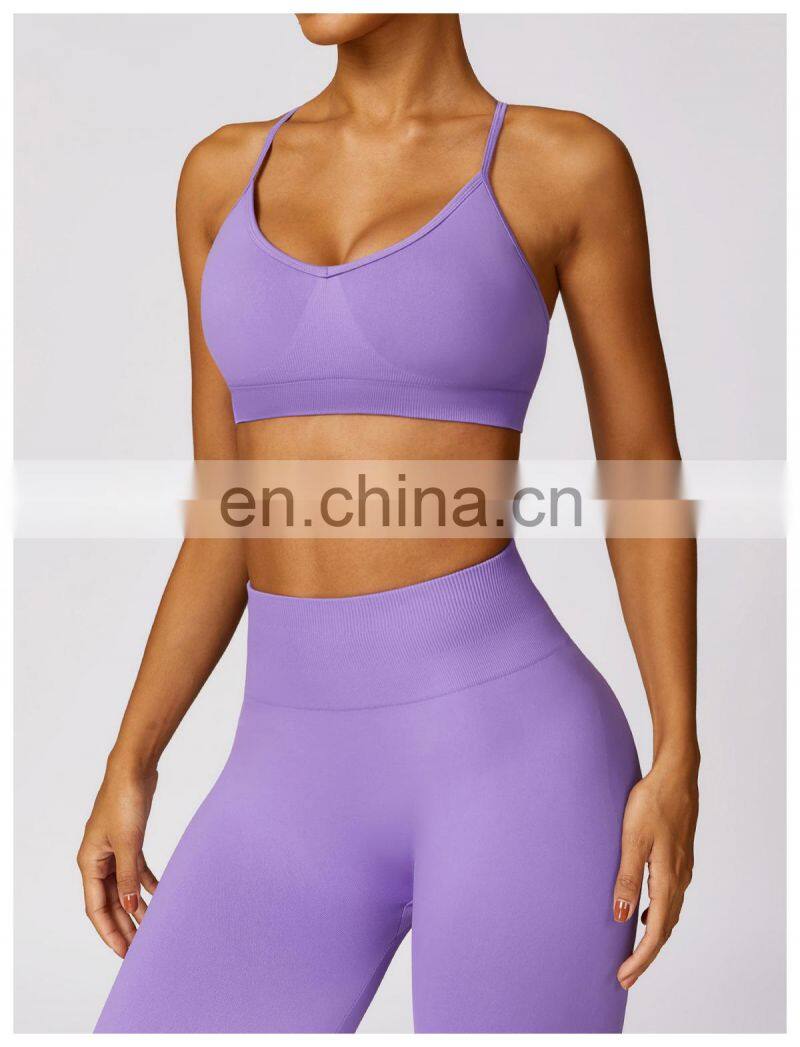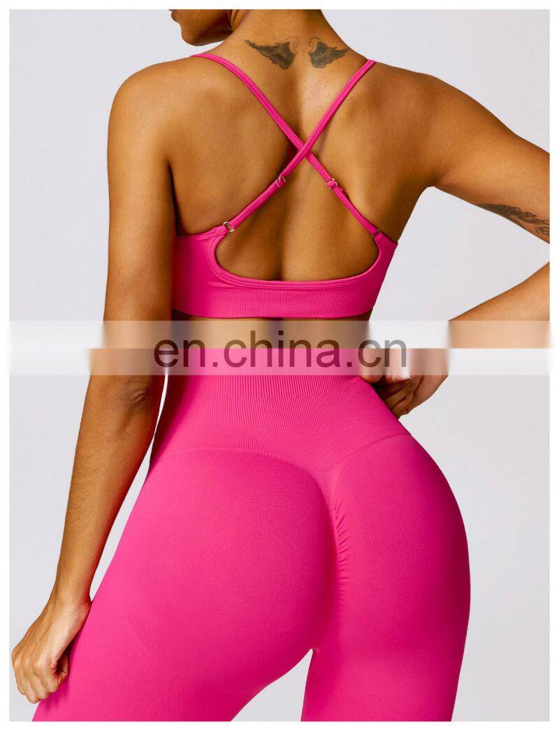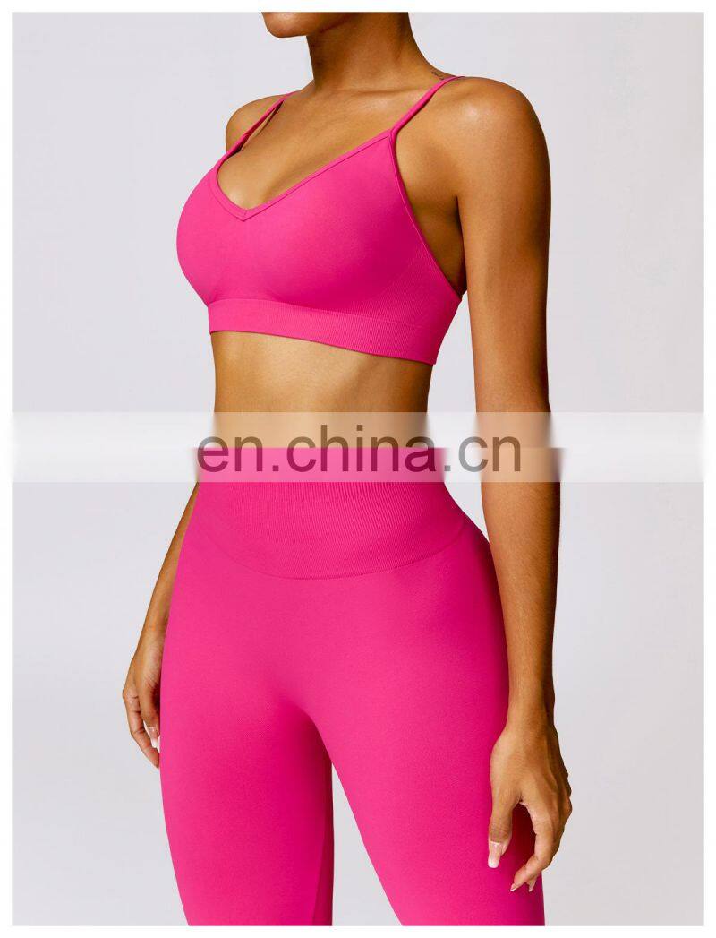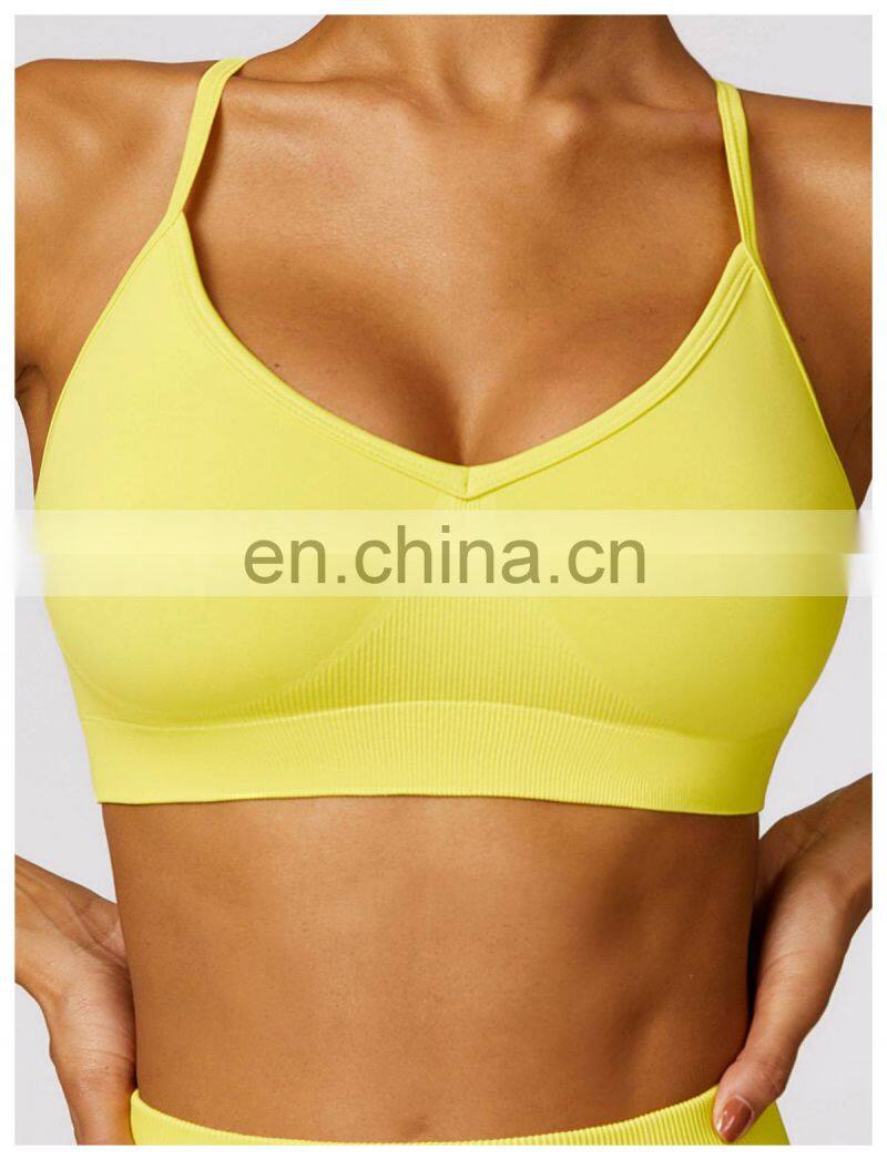 Hot Sale Sexy Thin Straps Beauty V Back Strappy Ladies Workout Gym Fitness Yoga Bra Top Women Good Quality Sports Exercise Wear