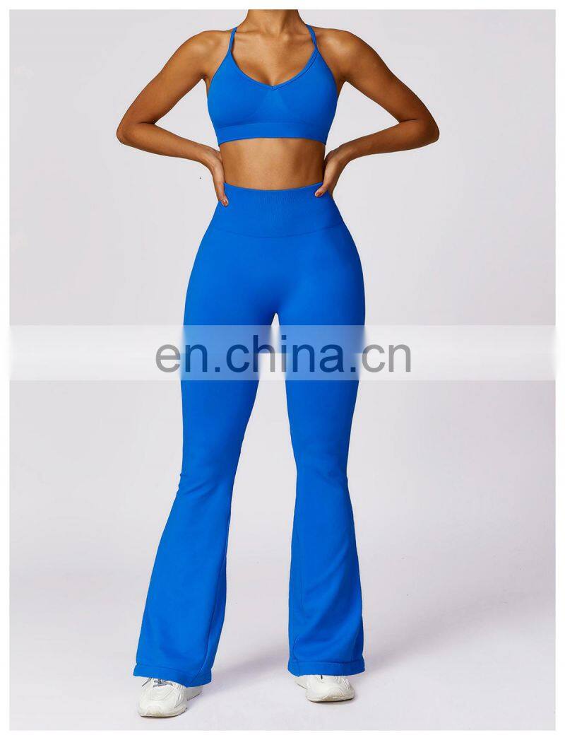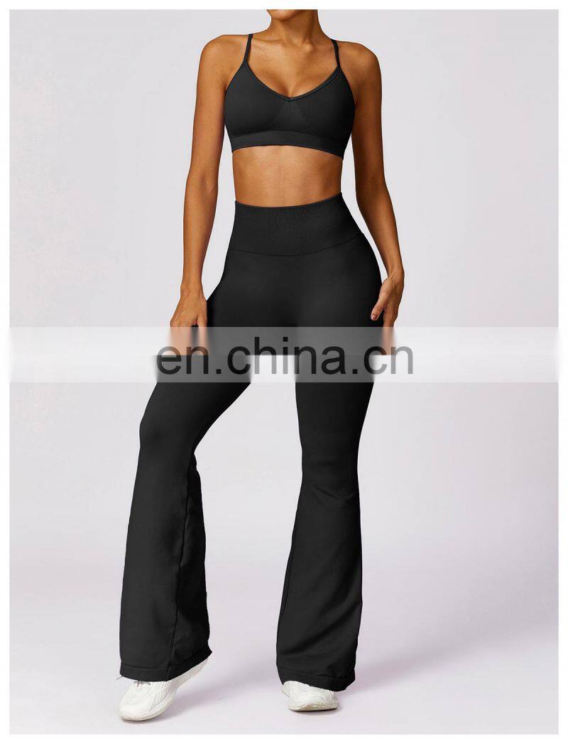 Running Sports Clothing Suit Shockproof Sports Bra High Waist Leggings 2 Piece Set Gym Fitness Sets Ribbed Yoga Set For Women