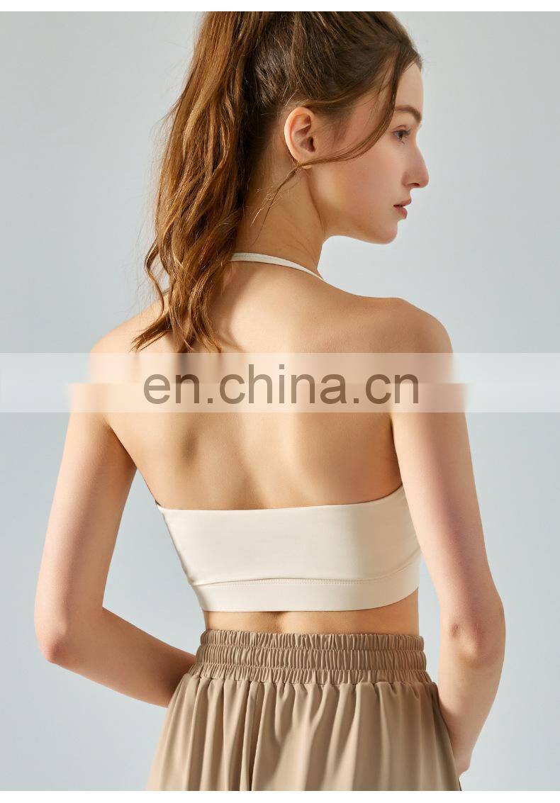 New Design Sexy Naked Soft Breathable Halter Neck Thin Straps Beauty Back Sports Yoga Wear Workout Fitness Bra Top For Women