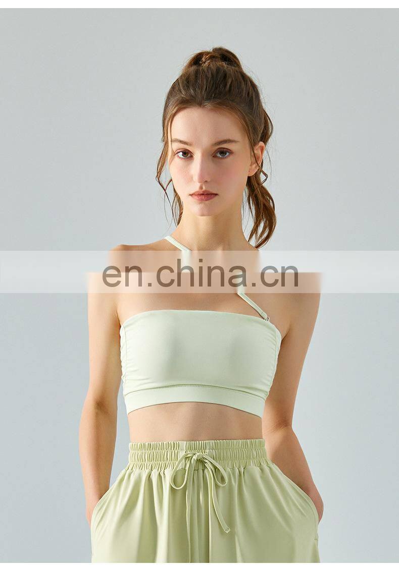 Women Gym Fitness Sexy Adjustable Removeable Thin Straps Yoga Tube Top Halter Neck One Shoulder Multi-Way Wearing Sports Bra