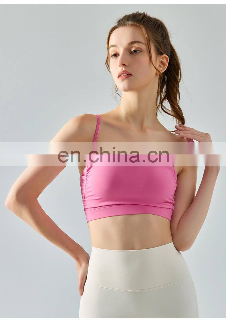 Hot Sale Sexy Thin Straps Beauty V Back Strappy Ladies Workout Gym Fitness Yoga Bra Top Women Good Quality Sports Exercise Wear