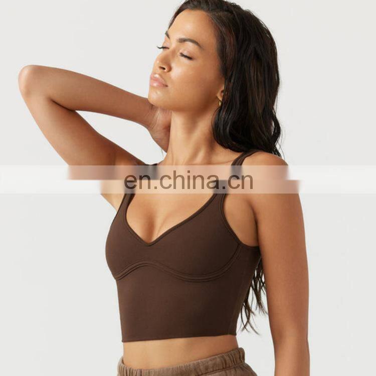 Factory Wholesale Women Long Line Cross Back Strappy Shockproof Sports Fitness Wear Nude Feeling Padded Gym Yoga Bra Top