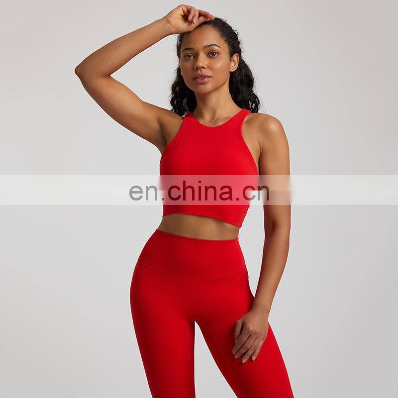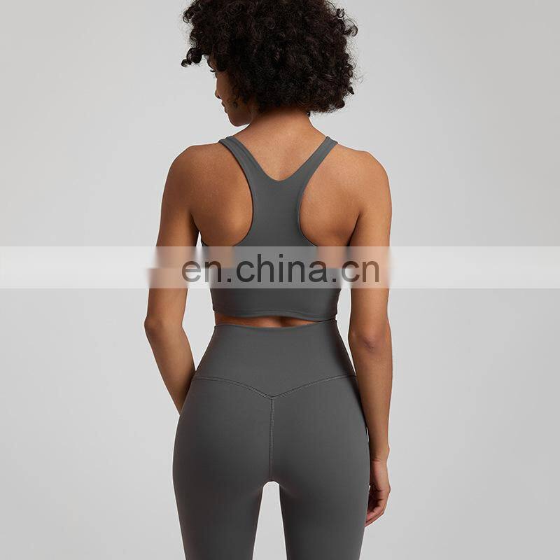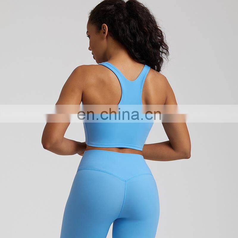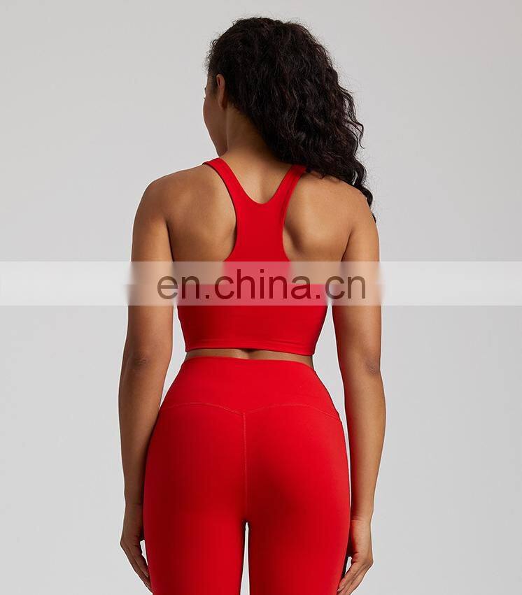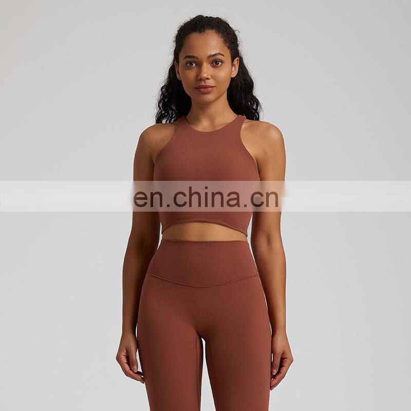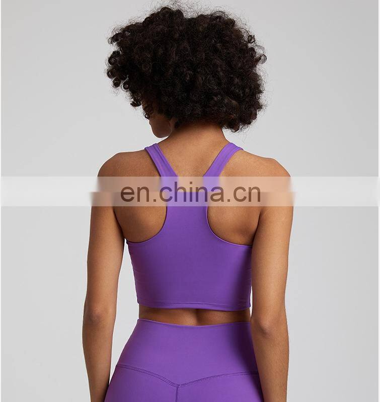 Factory Wholesale Women Long Line Cross Back Strappy Shockproof Sports Fitness Wear Nude Feeling Padded Gym Yoga Bra Top