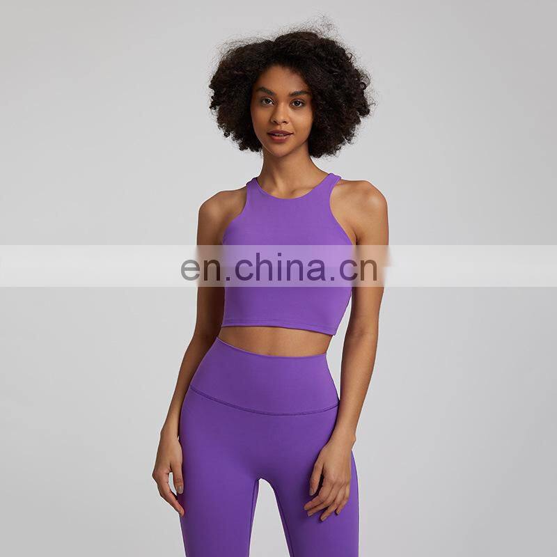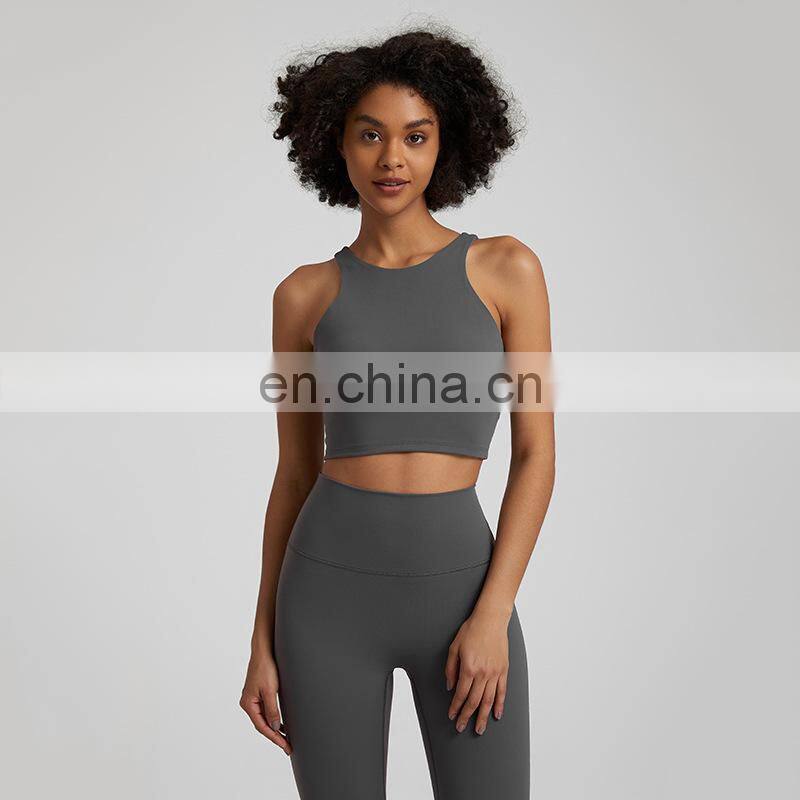 Wholesale Sexy Neck Hung Crop Top Women Athletic Fitness Yoga Gym Bra Sportswear Apparel Ladies Training Running Bra Vest Top