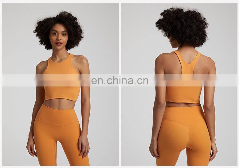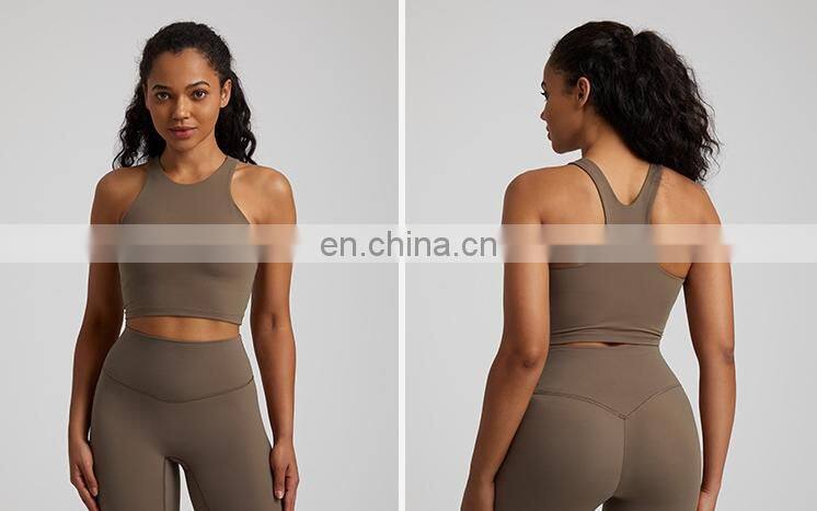 Newest Custom Logo Sexy Nude Thin Strap High Neck High Support Y Back Sport Gym Bra Top Workout Fitness Running Wear Women Yoga