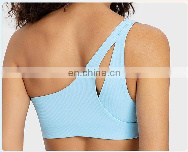 Wholesale Custom Ribbed One Shoulder Sexy Sports Gym Bra Top Ladies Outdoor Fitness Yoga Wear Clothing For Women