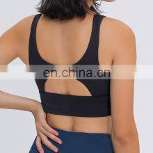 New Top Sell Sexy Back Hollow Out Soft Indoor Gym Yoga Wear Women Workout Fitness Sports Training Shockproof Bra Top Outfit