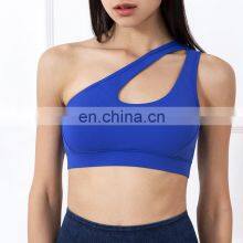 Hot Sale One Shoulder Strap Hollow Out Yoga Bra Sexy Women Gym Fitness Wear Bra Top Sports Outfit Training Clothing